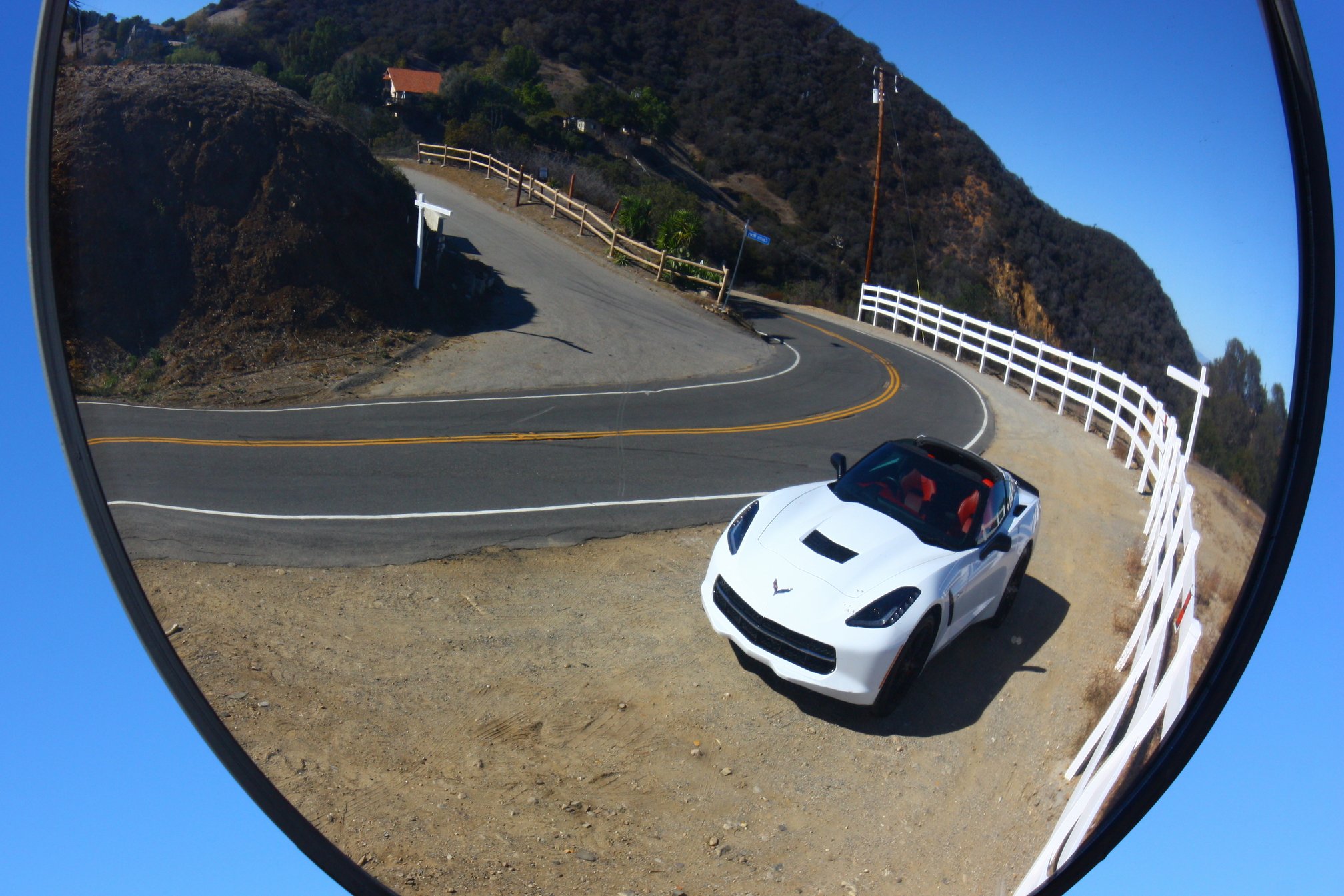 Mulholland’s long climbing sweepers on the boundary of Malibu Creek Park are quite a joy. The C7 really likes steady-state cornering and is not showing any signs of understeer. Lifting the gas tucks the nose neatly, stabbing the gas—as I found out earlier on Las Flores—also brings rotation via oversteer. I think the C7 would shine on a smooth and fast racetrack.