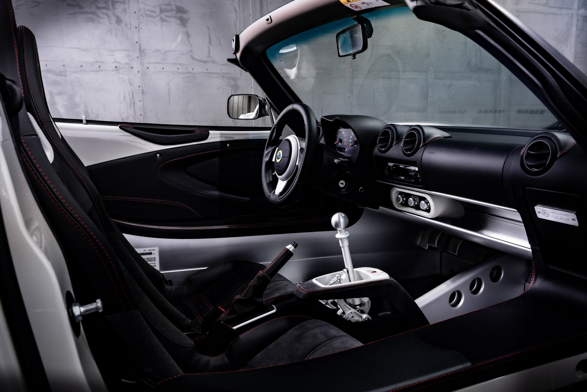 As the abundant aluminum surfaces in the cabin attest, Lotus was single-mindedly focused on lightness when they designed the Elise. In fact, they were so fanatical about the weight that they even combined the instrument cluster’s left and right indicators so that they could save a single bulb! Okay, okay, I don’t really know why they used a single indicator for both left, right and hazard flashers, but I would not put it past Lotus as a consolidation to save ounces.