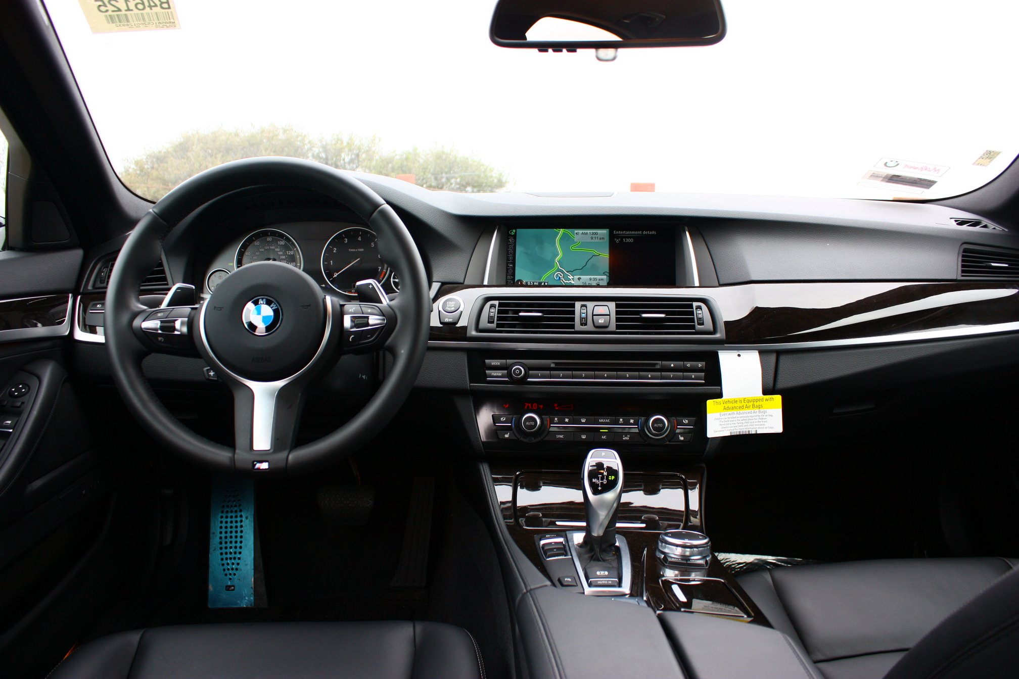 On to the power: This BMW packs the ubiquitous 3.0l turbo inline-six that I believe is an optional engine for every (non-M) model BMW sells. I have driven an older version of this motor in an E93 335i cabriolet, and at the time I was not impressed by the unit. Mainly, it seemed to have a bit of sloppy lag on throttle tip-in that was not in holding with its otherwise linear power delivery. In the 535i, there is substantial low and mid-range torque that makes this 5-series a fast vehicle at US legal speeds. (Flat-footing it from 75 mph is less jaw-dropping.) The engine does lose steam about 1k before its redline, but that’s forgivable since you’ll hardly ever be driving in that range anyway. What is greatly improved is the turbo lag; in truth, I had to go looking for the turbo lag before I found it!