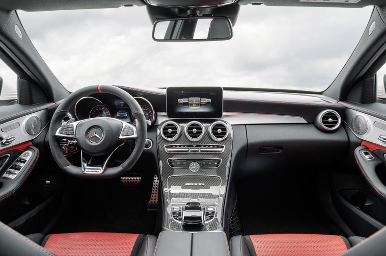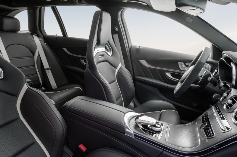 It is with all these hopes and preconceptions that I approach the test car, a black C63 S sedan with silver wheels, and slip into the driver’s seat. I’ve sat in this seat before in a prior visit to the showroom. It is a lovely place to be, a substantial level-up in design and materials versus what BMW puts in its F80 M3 and F82 M4. The Mercedes C-class has beautiful sweeping aluminum accents, high-quality surface materials—carbon fiber in this car, but I actually like the optional open-pore wood better—a sporty steering wheel with Alcantara grips and sensuously sculpted seats swathed in supple leather. Audi used to set the benchmark for automotive interiors; I’d say Mercedes is now the standards bearer.