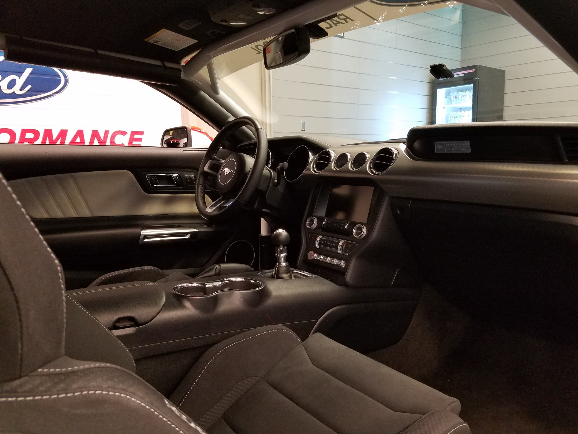 To my surprise, I find a couple of ergonomic challenges waiting for me in my Mustang. The performance seat’s integrated (fixed) headrest pushes my helmet forward more than I’d like. And my seating position has my right knee brushing against the steering column. This latter issue turns out to be moot, as my right foot will be extended flat to the floor much of the day.