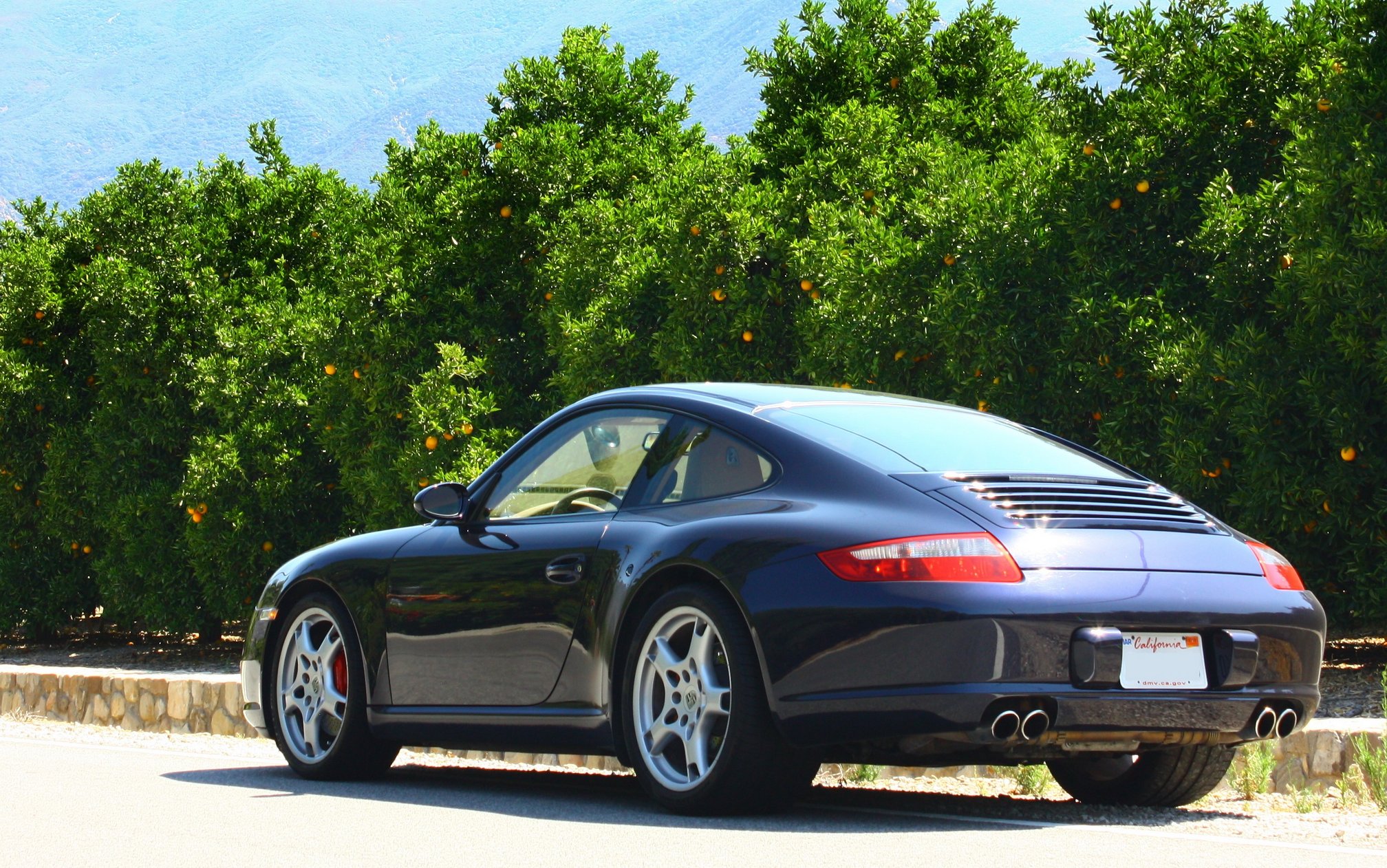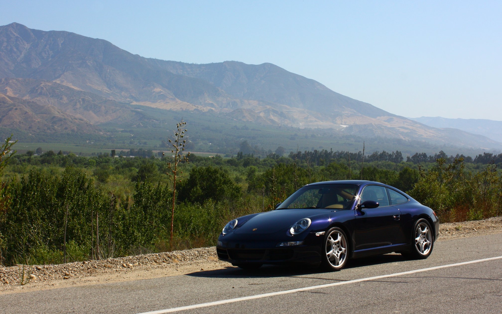 The valley of orange and lemon groves at the foot of the rugged mountains is gorgeous, a perfect backdrop for beauty shots of the car. Even though it’s 12 years old, this dark blue Carrera S has been well cared for and is relatively fresh with just 40k miles. It glistens in the sunlight, strutting its classically curvaceous surfaces, a hallmark of the 911.