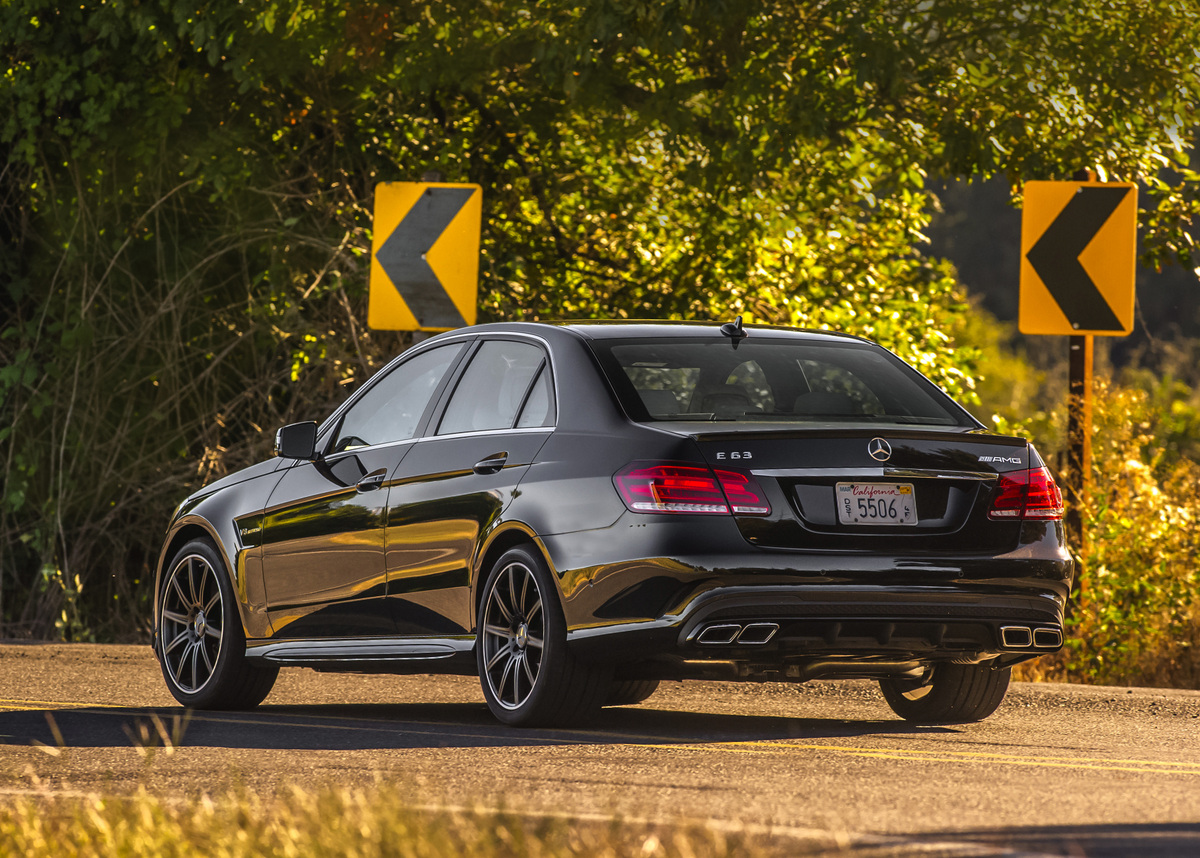 Both the salesman and sales manager have given me not-so-subtle hints that this car is wicked fast and that I’m not to floor the throttle. The good boy I am, I follow the rules. My acceleration run uses maybe 75% throttle, but it’s enough to see that the E63 is much faster than the cars in my garage. Mercedes pulls hard from low RPMs without a hint of turbo lag. I don’t get anywhere near the red line, yet the E63 is moving like a missile. Through the open windows, there is a hint of turbo whistle over the V8 blat. This is the first E63 to use turbocharging, with mighty effective results. My M3 is going to feel slow on the way home.