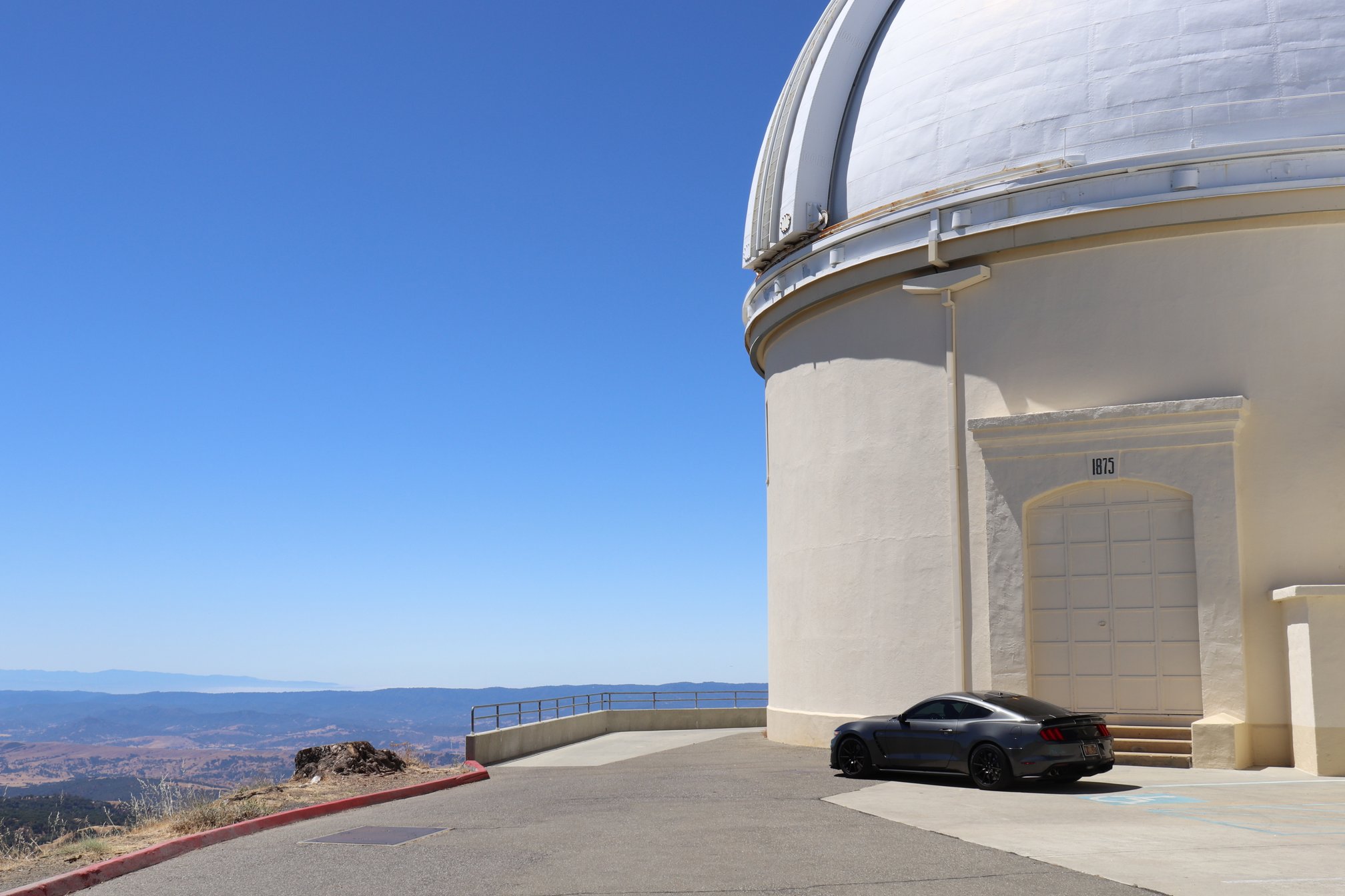 After a short lunch break at Mount Hamilton Observatory, I take the wheel and point us down the backside of the mountain, working the GT350 down San Antonio Valley Road’s rough and beautifully snaking pavement. It’s as if I’ve shaken the GT350’s hand, found a menacingly firm grip, and an invitation to fight. San Antonio Valley Road is pocked with lumps and bumps, and even simple straightaways become arm-wrestling matches with the steering wheel. The tramlining is worse when braking is combined with blistered pavement: The car threatens to pull out of the lane and into the ditch.
