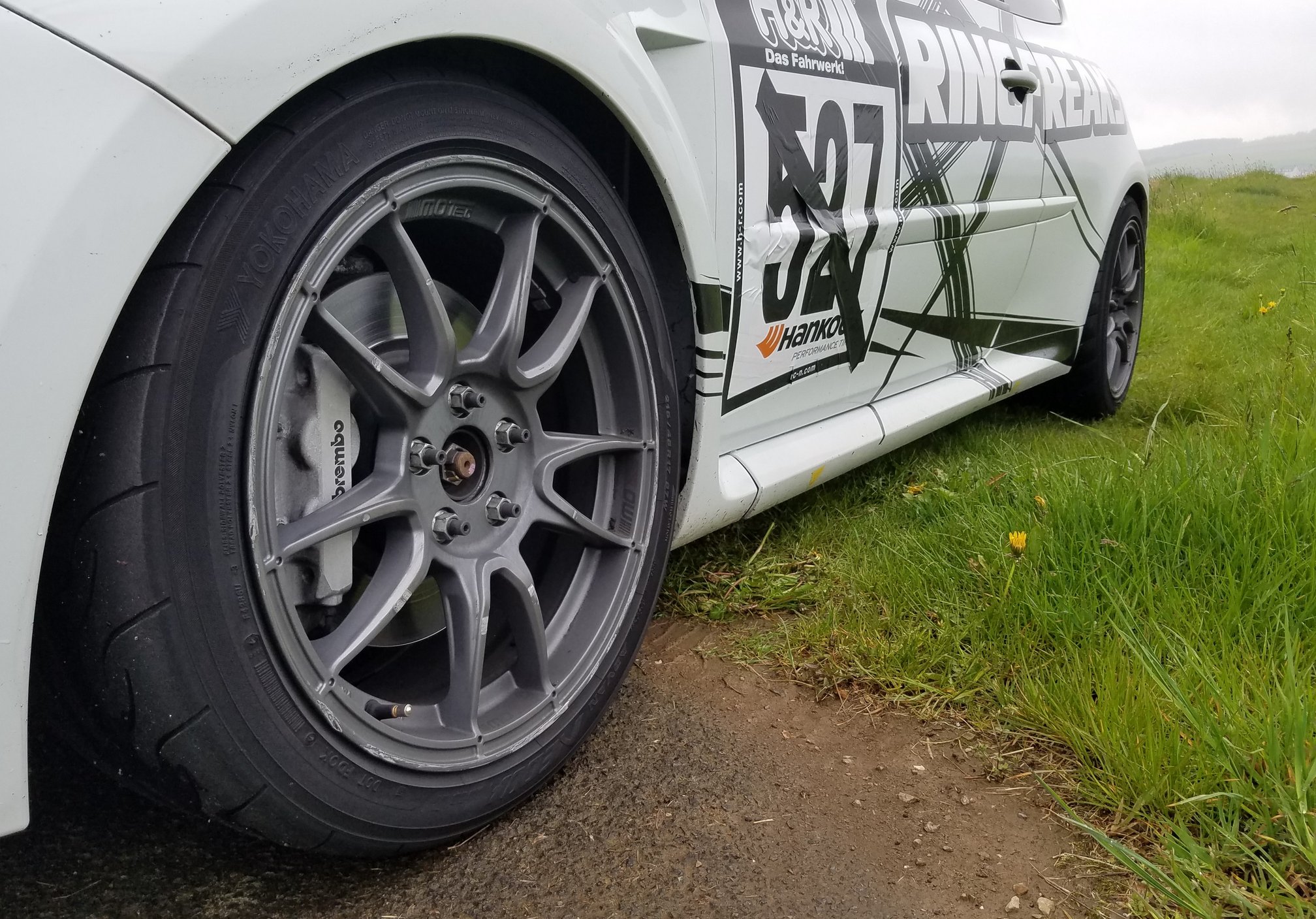 The KW suspension was perfect, controlling the RS’s body yet still allowing the compliance we wanted from the car. It would be too stiff for road use but was great for speeding around the Ring.