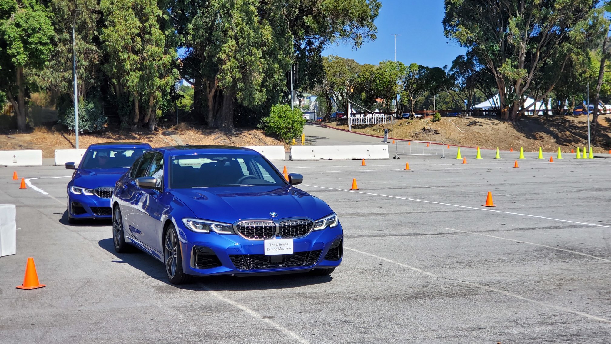 More on that autocross. BMW let me whip the M340i through a coned-in course at San Francisco’s Cow Palace event center. Autocrossing the M340i was exciting but ultimately frustrating. The Cow Palace parking lot is hemmed with walls and curbs, and supervising instructors fretted that fearless patrons might clip a wall or plow into a fire hydrant. (The M340i is much more potent than last year’s X2s and 530es.) To neuter the car, all laps were done in Comfort mode with ESP and TC on. Neuter the M340i they did.