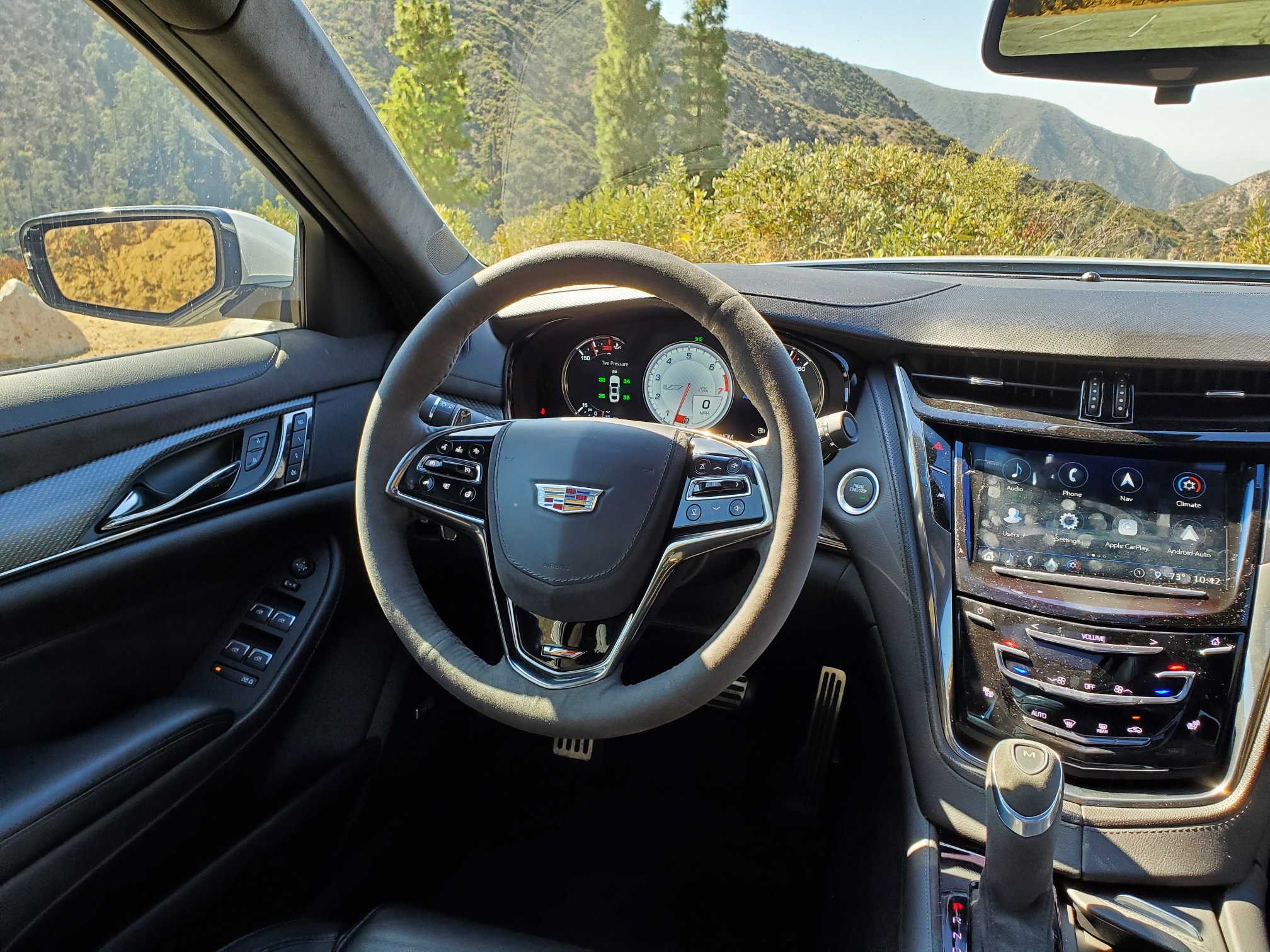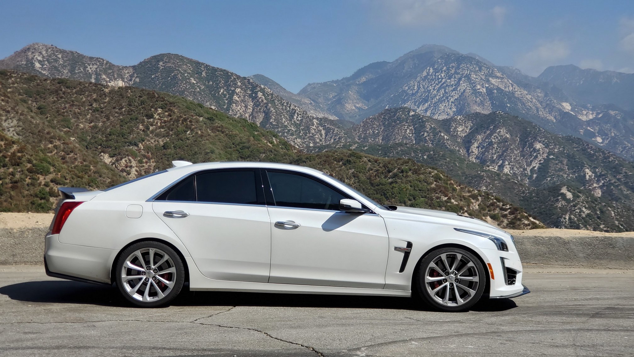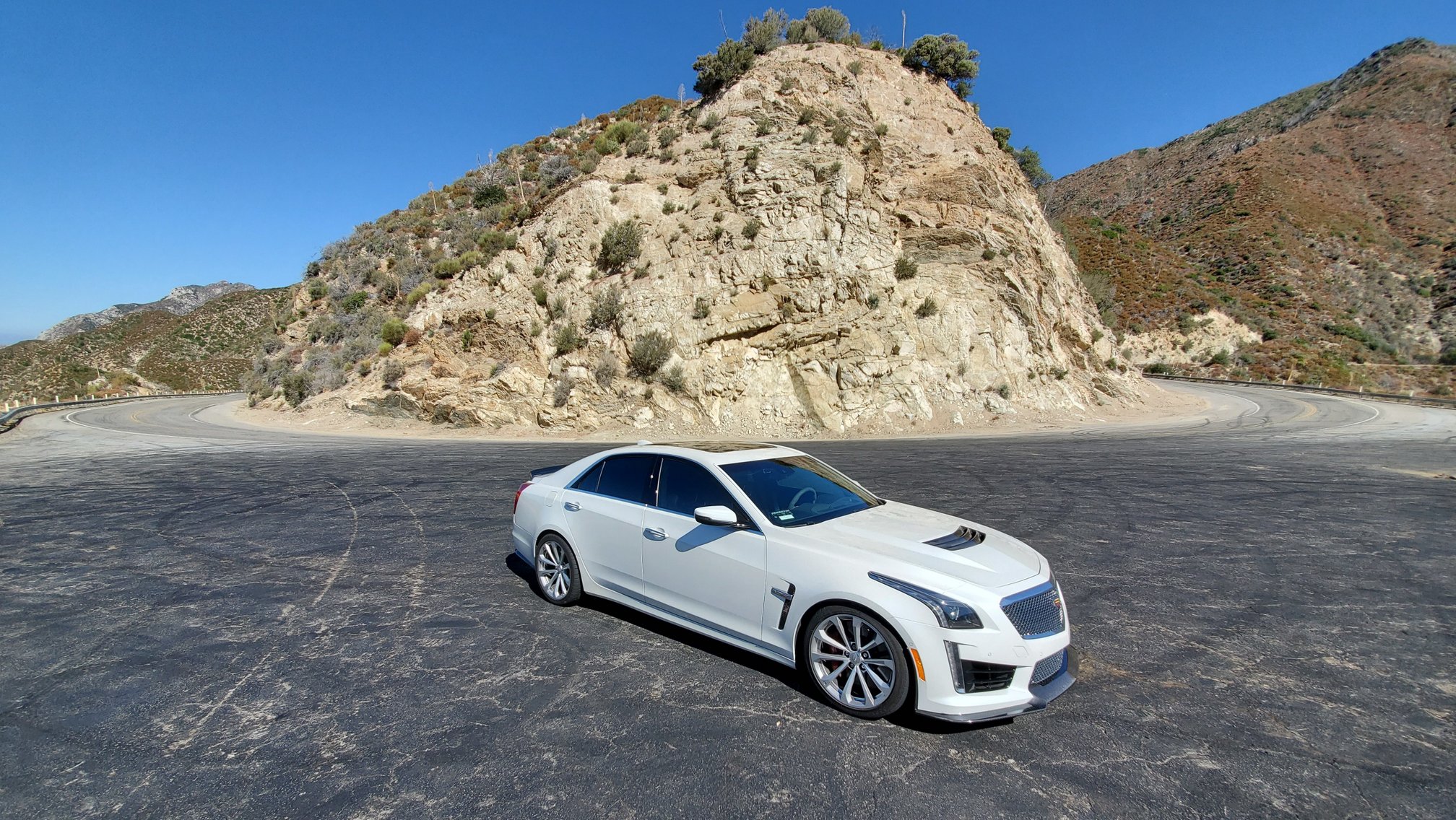 It is a heart-pounding one hour drive over the mountain. The brakes are flawless the whole way, shrugging off the 6,000 ft descent into urban LA. They may use steel rotors, but they are track-ready. The brakes also have that mild initial bite that I am used to from my 2014 CTS-V, and then build a firm pedal with excellent modulation.