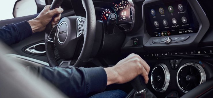 The seat and steering column are adjusted for my body, and the mirrors have been moved for maximal (yet still limited) visibility; I’m ready to drive. I reach for the stick and depress the clutch. The beefy 6-speed shifter stands low, and its throws are commensurately short. The clutch pedal is surprisingly easy to work. (It has that compound-bow feeling where its resistance lightens at the end of travel.) I move the shifter through the slick gates and engage first gear. Slipping the clutch, I ease the Camaro SS into motion.