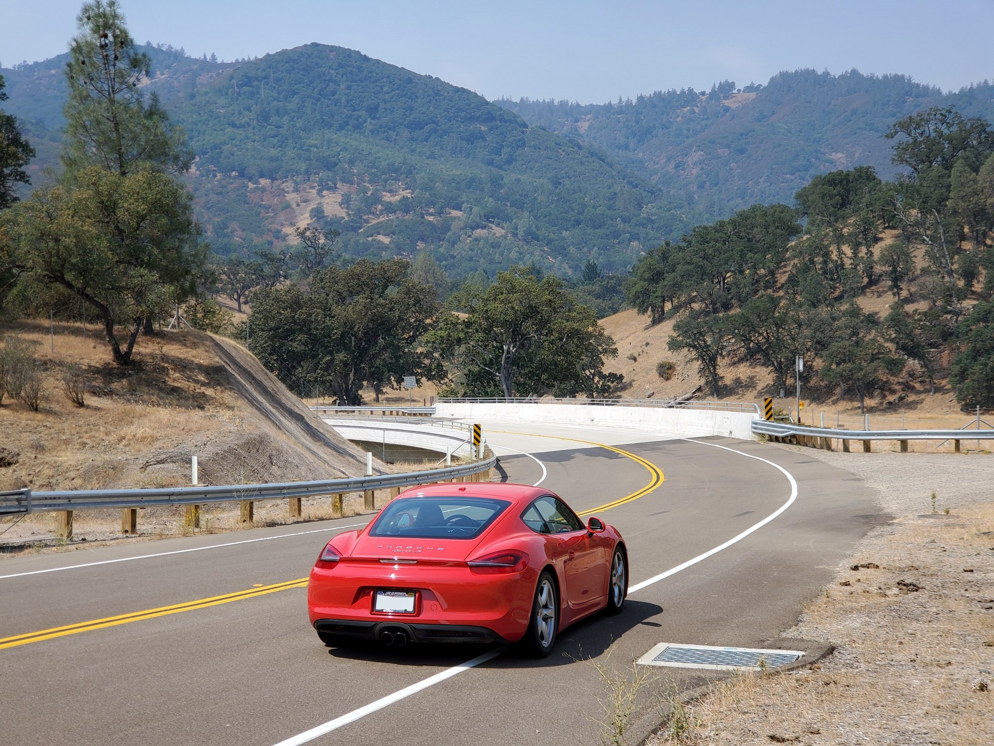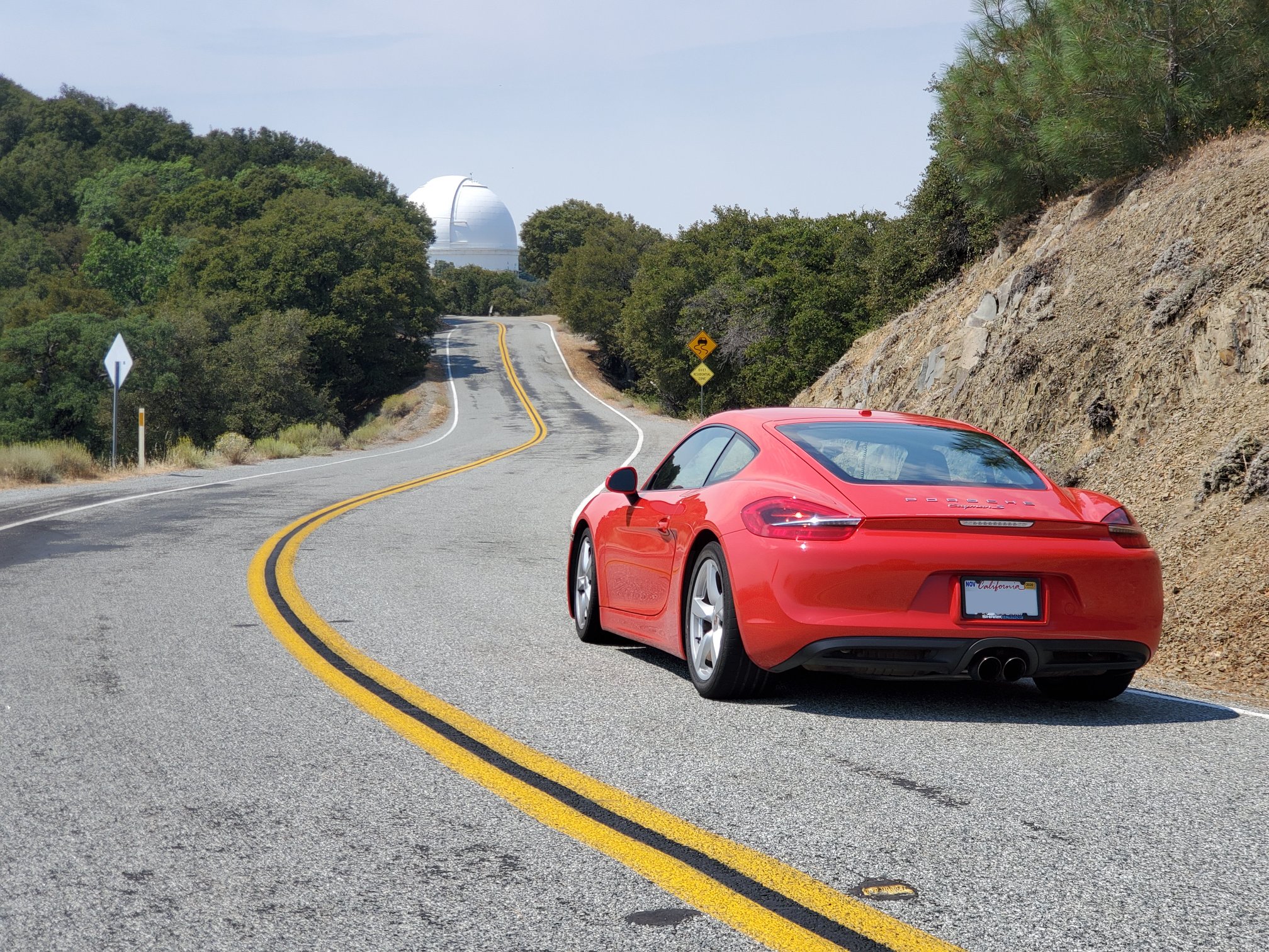 At the top of Mt Hamilton, I sit in the shade of an oak tree, munch on my PB&J, and consider my climb. The Cayman sings, dances, and (its tachometer) reaches for the sky. It corners more eagerly than any car I’ve ever owned. But where’s my perma-grin? Why am I sitting here with the emotional excitement of a chewing-cud cow?