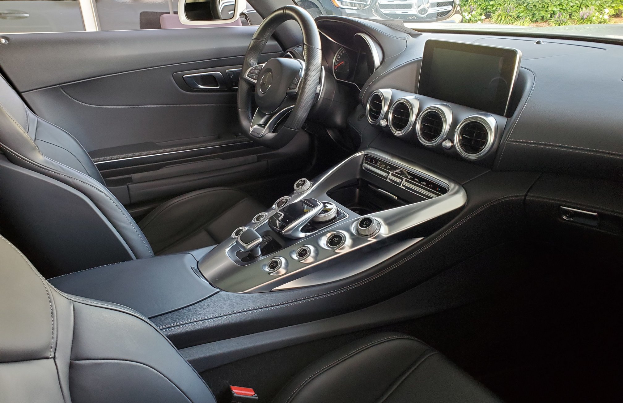 I’m a little abashed to admit it, but I miss the luxury trimmings of my last AMG GT S tester; its seats and doors were brightened with red leather. Today’s GT is boring in black, and its only bright notes are the console’s and air vents’ metal surrounds. I realize it now, but last month’s GT S fit glossy carbon fiber where the base car uses painted plastic. Unfortunately, the base GT encompasses the shifter and COMAND controller with soft-touch plastic that looks sure to nick and peel. Due to the lack of luxury lickings, I might call the original purchaser a miser, but it’s equally possible that he bought the car on a budget and knew exactly what he wanted out of his ride.
