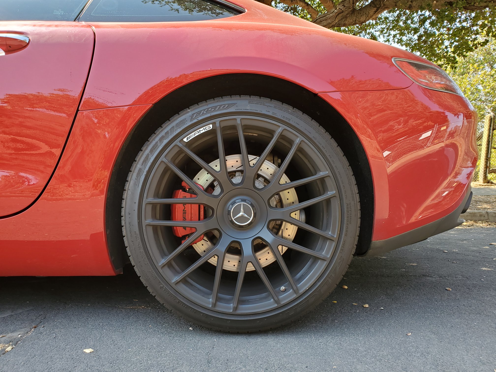 Equally enjoyable are the big red Brembo brakes. The pedal is firm and immediate, and the pads bite into the iron rotors with tenacity, drawing-down my speed with authority. The iron rotors on my GT S are the poor cousin of the optional AMG carbon ceramics, but the iron brakes’ performance is flawless on the street.