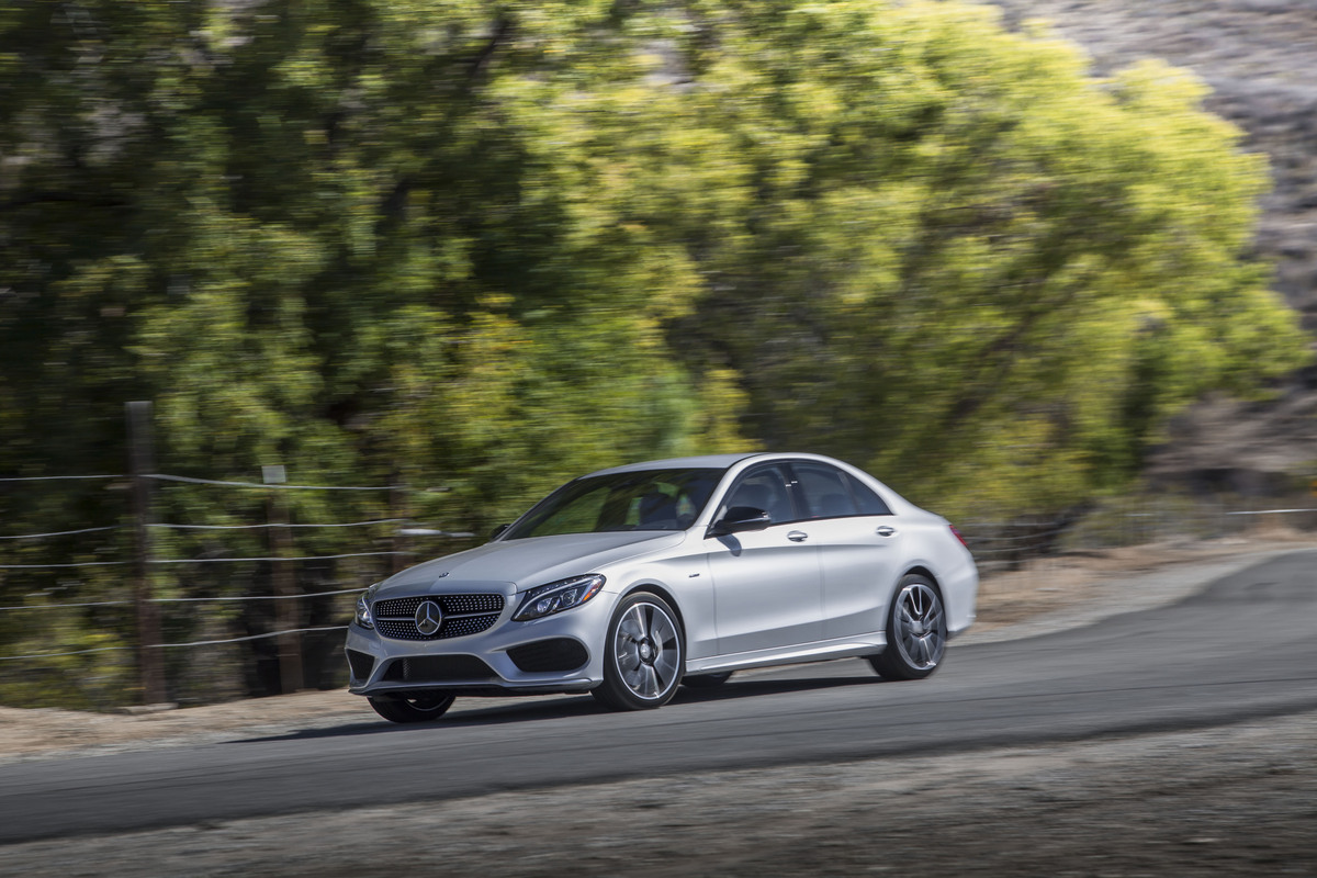 On American shores, the crest of the wave was the 2016 Mercedes-Benz C450 AMG. Priced from ~$52k, the C450 AMG fit between the luxurious Mercedes C300 and the road-burning Mercedes-AMG C63. Even though the C450 AMG used a mass-produced V6 rather than a handbuilt-unit assembled by AMG gurus, the twin-turbo V6 still put down a healthy 362 hp and 384 lb-ft of torque. The 4Matic AWD was tuned with a strong rear bias—67%—to give a more sporting feel, and the C63‘s front suspension and adjustable-stiffness shocks were stolen out of the parts bin. Yes, the C450 AMG was an appealing tweener.
