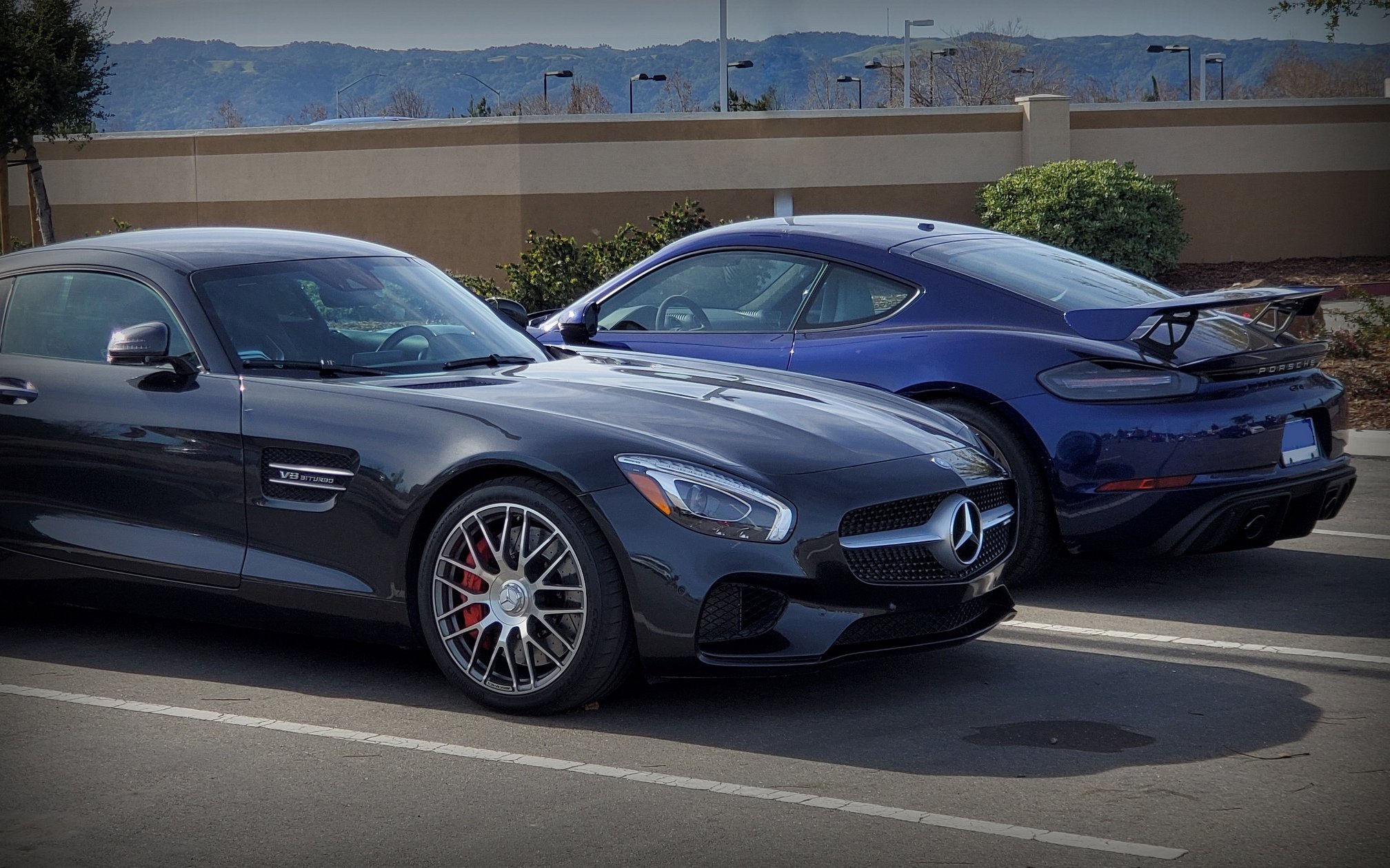 The two engines may displace 4.0L, but in all other regards, they are diametrically opposed. The AMG twin-turbo V8 is as stout as a redwood tree, incredibly effective at launching the GT S at the horizon, yet equally adept at highway loafing. Next to it, the GT4’s thin low- and mid-rpm power leaves me wanting, but its flat-6 sings sweeter and has a more climactic redline rush. Regardless, in street and canyon driving, I more readily enjoy the GT S’s strengths.