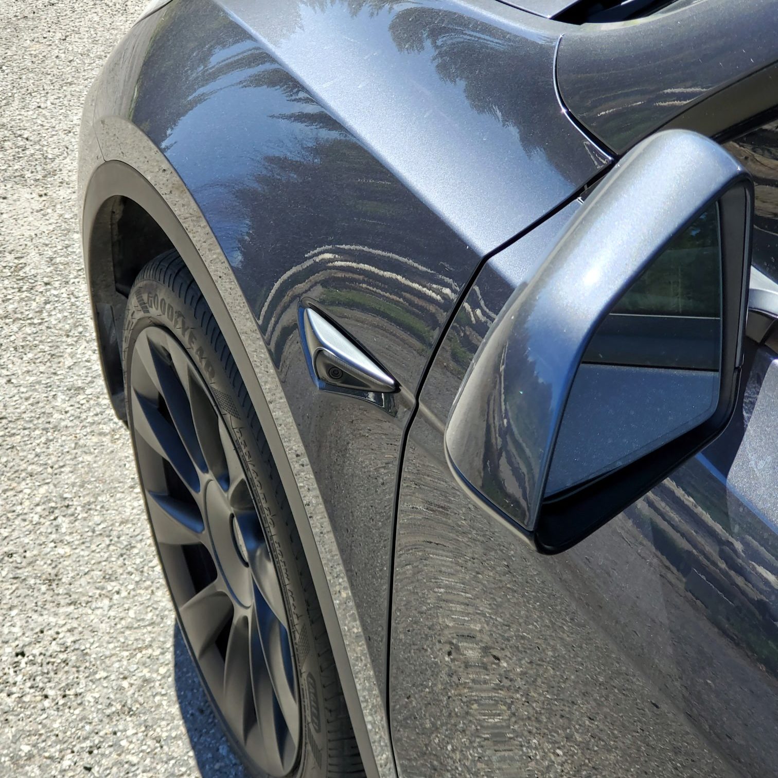 I peek at the tires and find 255/40R20 Goodyear Eagle F1 Asymmetric 5’s on all four corners. This is a much larger wheel—and smaller sidewall—than the 18-inch wheels on my Model 3, so it must be the suspension that’s adding compliance. This is more proof that Tesla focused on comfort with the Model Y.