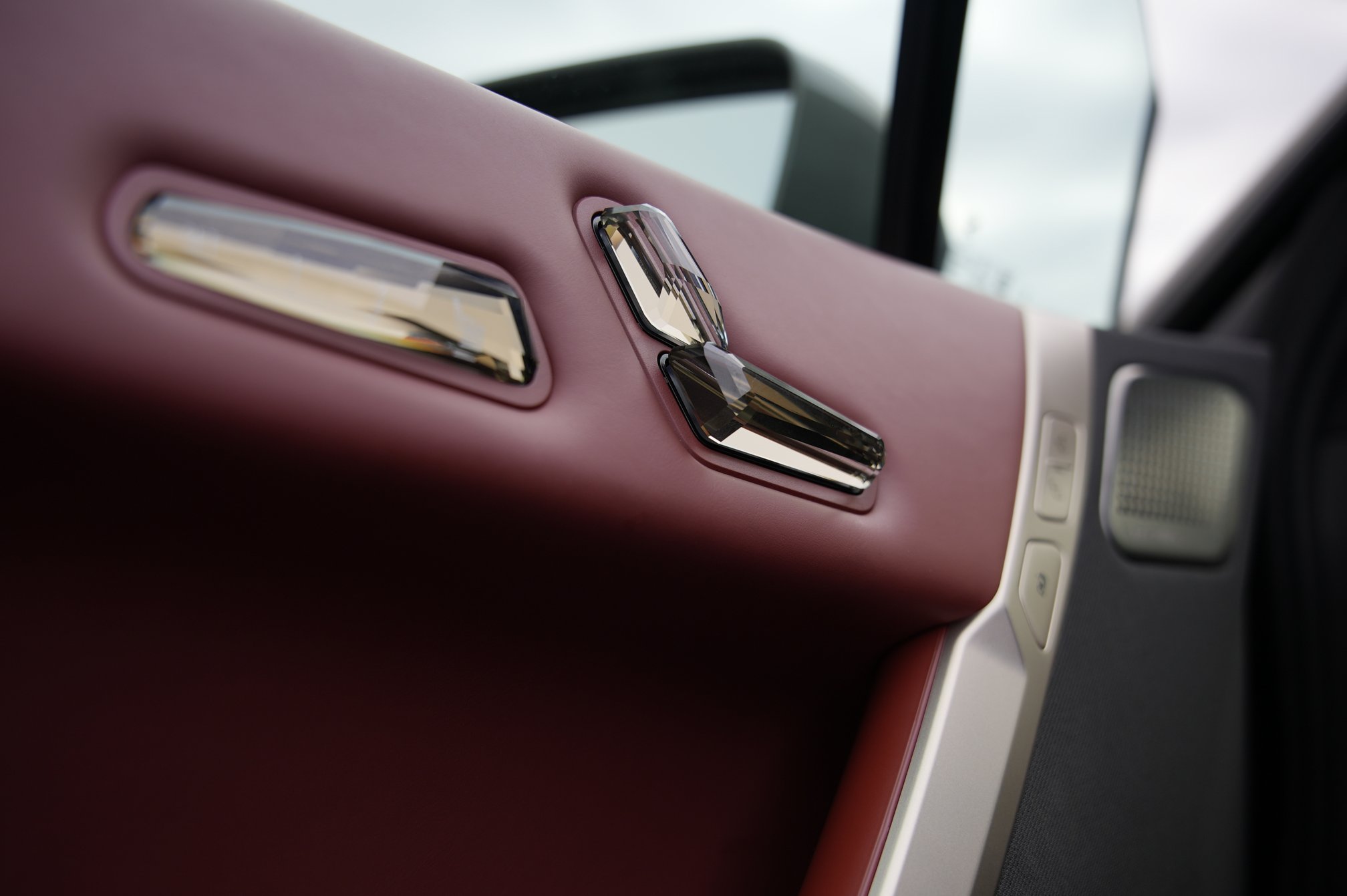 Sitting behind the driver’s seat, I’m impressed by the copious legroom. The headroom is good too, and the glass ceiling adds an airy atmosphere. (The driver can turn it opaque with the touch of a button.) My roving hands find the same fine upholstery and gold-tinted trim that is fitted up front. I don’t have any screens to play with, but HVAC controls and charging ports will ensure I’m comfortable and DIY entertained. Yes, these rear quarters are as lovely as an X5’s and will be comfortable for adults of all sizes.