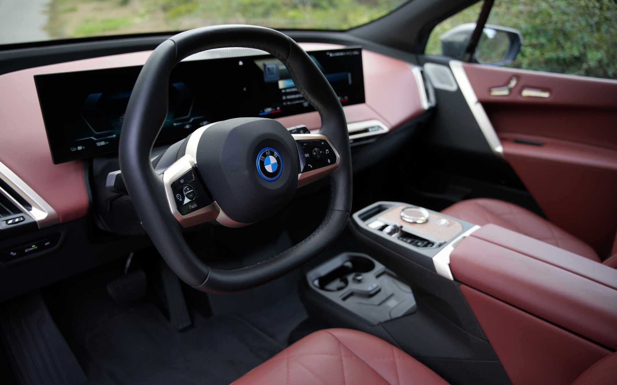 As I pull onto the city streets, I take in the dimensions of the iX. It feels roughly as large as the midsize BMW X5. An upright windscreen and tall side windows give a commanding view of the road. Maneuvering the big SUV is easy thanks to the excellent outward visibility and turn-tightening rear steer.