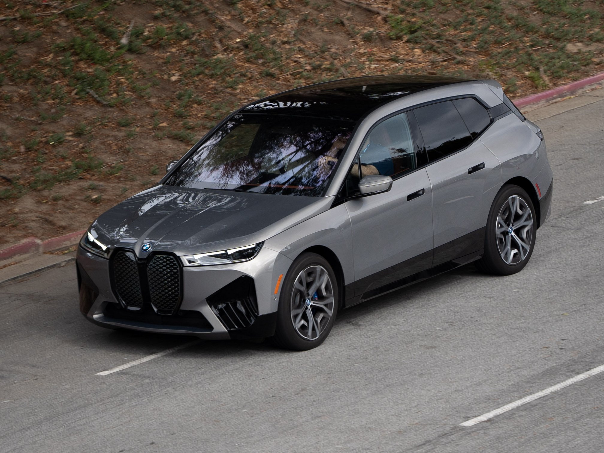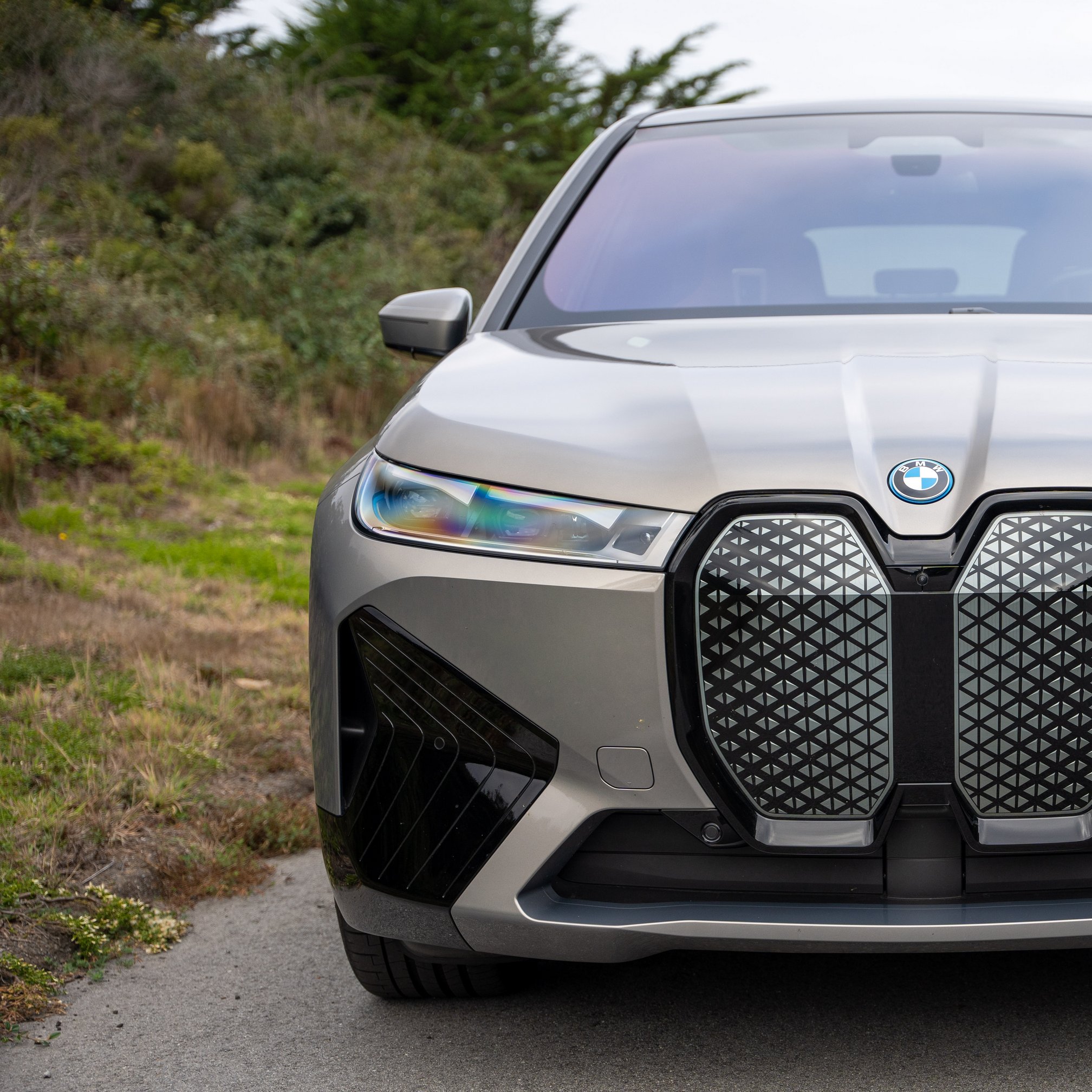 At the summit, I pause in a trailhead parking lot to take pictures of the iX. Painted in flat gray, the boxy iX looks like a Briggs armored truck from a dystopian future; I can easily imagine it filled with masked baddies and pursued by police. Hell, with its squinty eyes and muzzled face, the iX looks like a baddie itself.