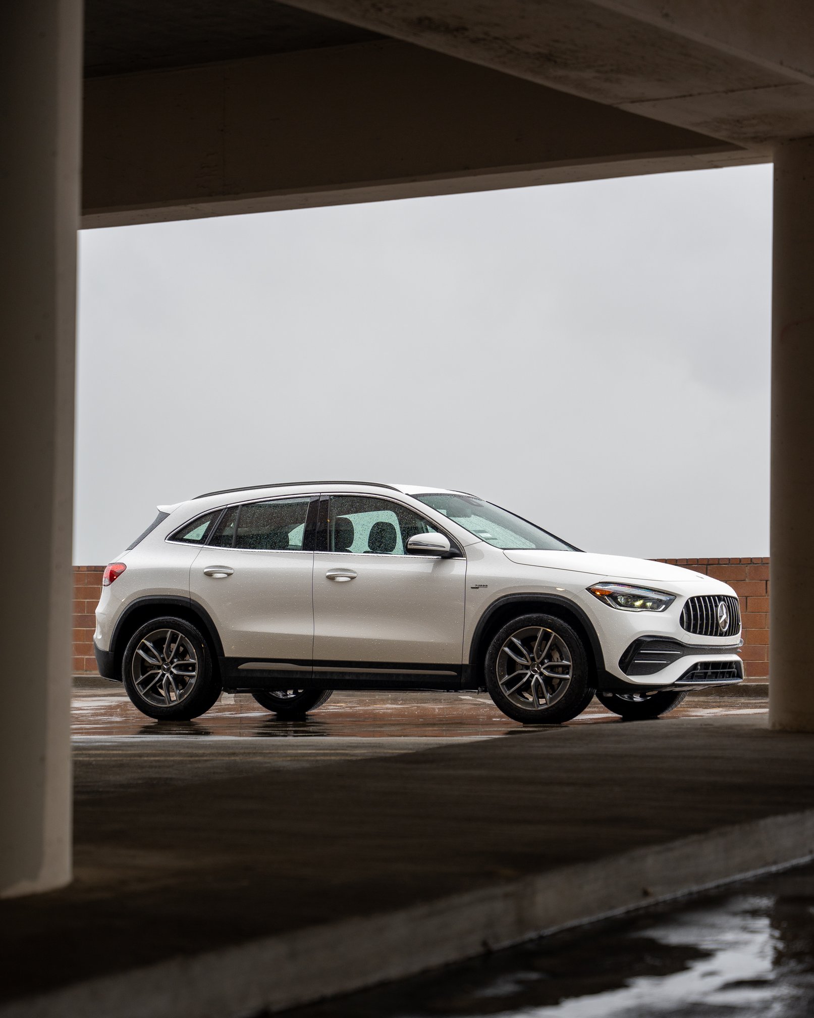 The next day my adventures with the GLA 35 are mundane. I take my kid to daycare and run errands in a torrential rainstorm.