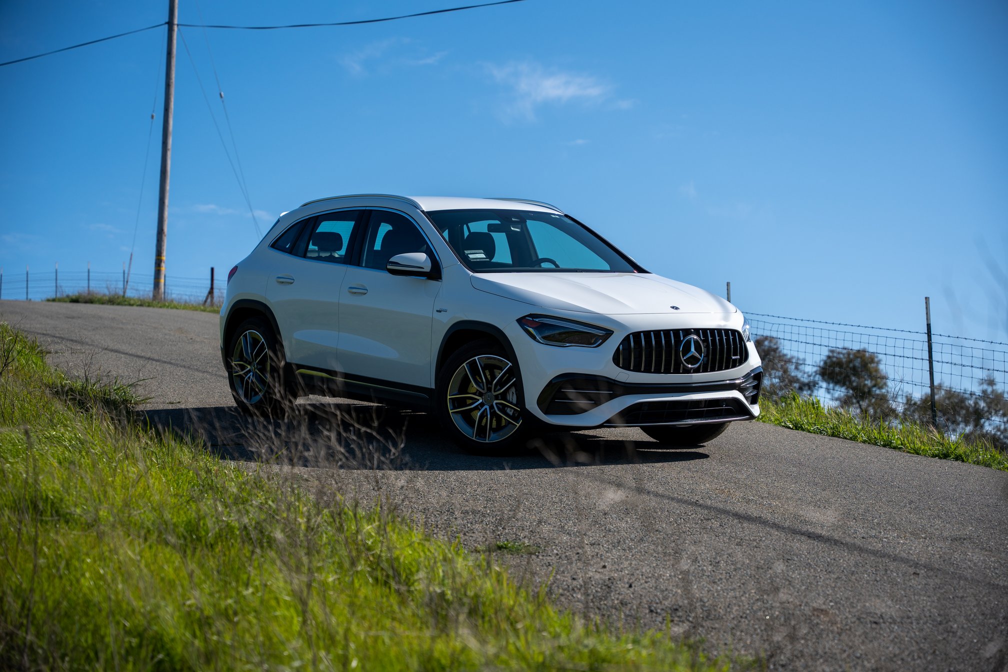 “Got anything fun?” I ask, not expecting an affirmative. I’ve only spotted base-level sedans and SUVs in my half-dozen visits to the Mercedes dealer. “Actually, I do,” comes the reply across the loaner desk, “would you like a GLA 35?” Hell yes! I’d love to try a baby AMG!