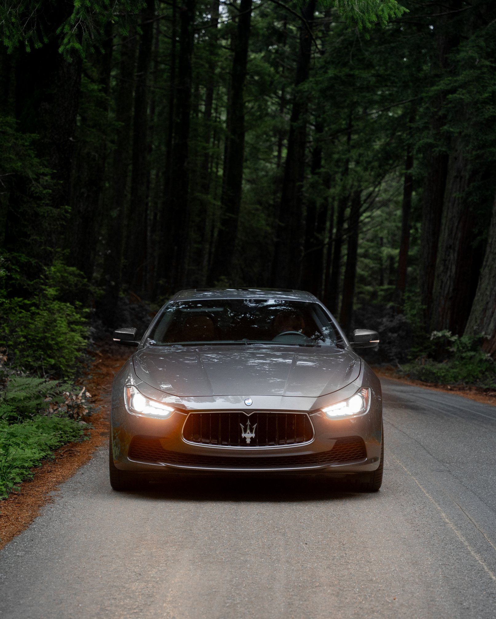 Winding through the trees, I acclimatize to the Ghibli on the move. At this slow pace, the steering is heavy and muted—only the largest bumps make it to my fingertips. The drivetrain senses my laziness and upshifts, running the engine at a measly 1500 rpm. Unhurried driving doesn’t capitalize on the Ghibli’s sporty heritage. Its tight suspension clomps over the bumps while the engine wheezes along, running below the turbos’ boost threshold.