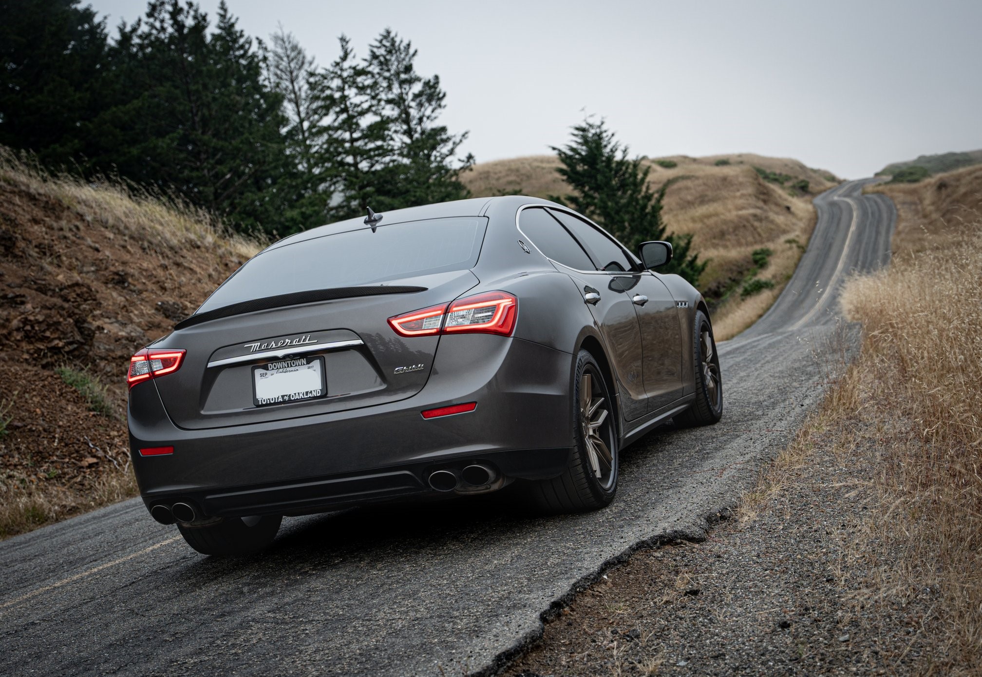 It’s been a while since I’ve driven a car that is so unabashedly turbocharged. There is little power below 2.5k rpm, but the trees start to blur when the boost piles on. The engine pulls harder and harder through its midrange and sustains its fury to the redline. And the sound—what a sound! Rising melodies blast forth from the air box and four-tipped exhaust. The Maserati twin-turbo is opera-ready with a tenor belt.