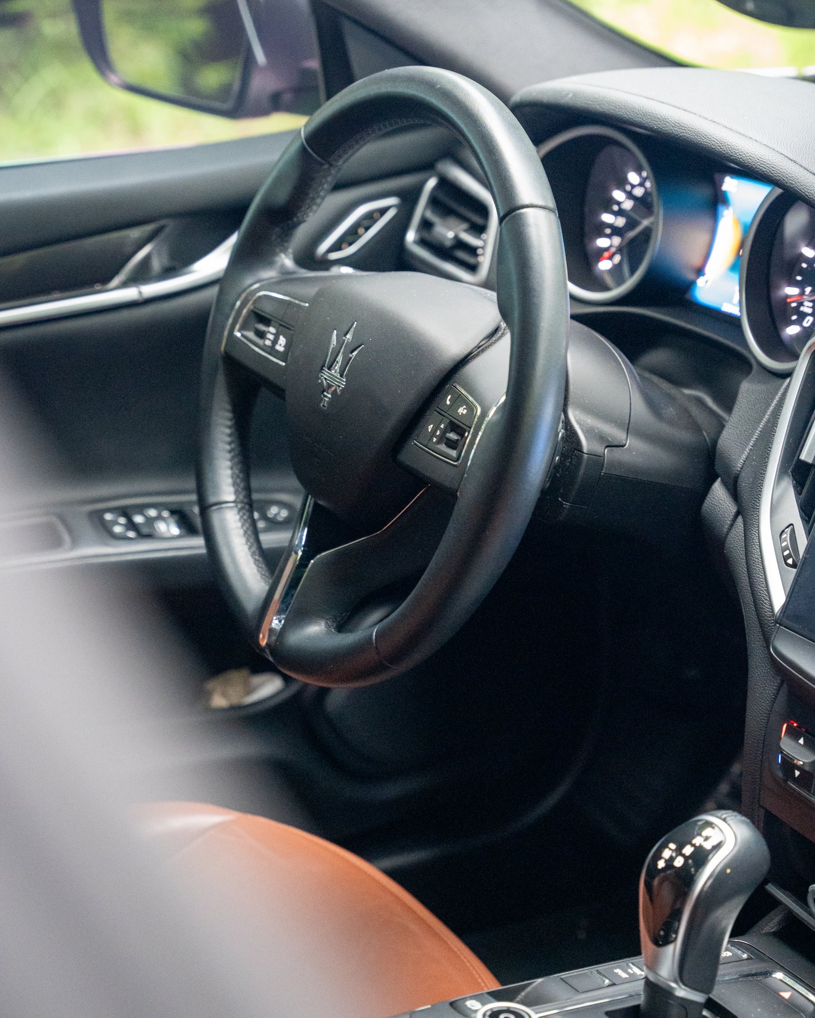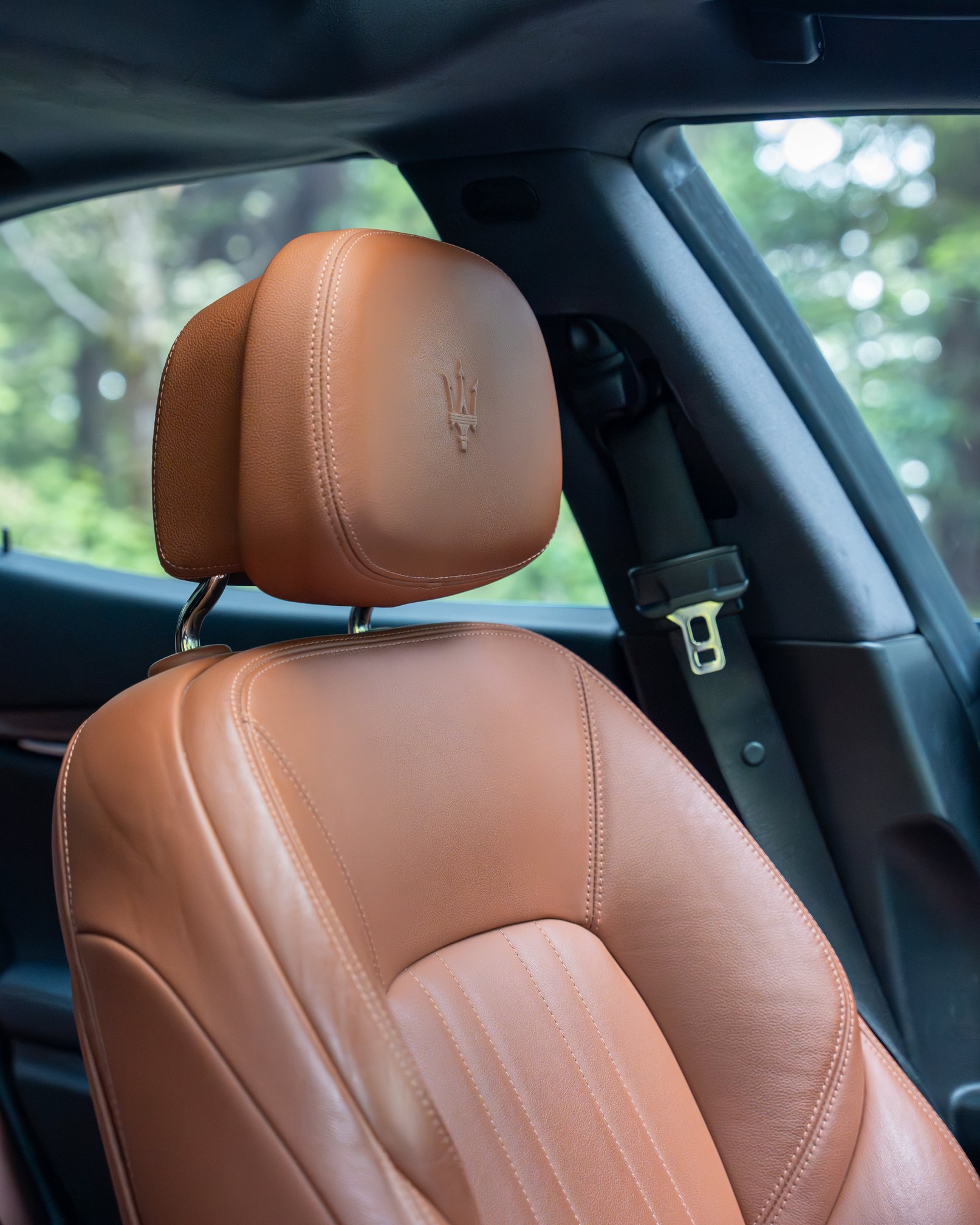 This is my first Maserati experience, so I can’t pick apart the brand’s interior calling cards from the Ghibli’s idiosyncrasies. What I do notice are the handsome steering wheel and fine leather seats, both of which are embossed with Posiden’s trident. Unfortunately, the Ghibli’s dashboard draws up memories of my Dodge Durango test: The big, bright UConnect navigation screen in the Maserati is the same easy-to-use unit found in other Stelantis brands.