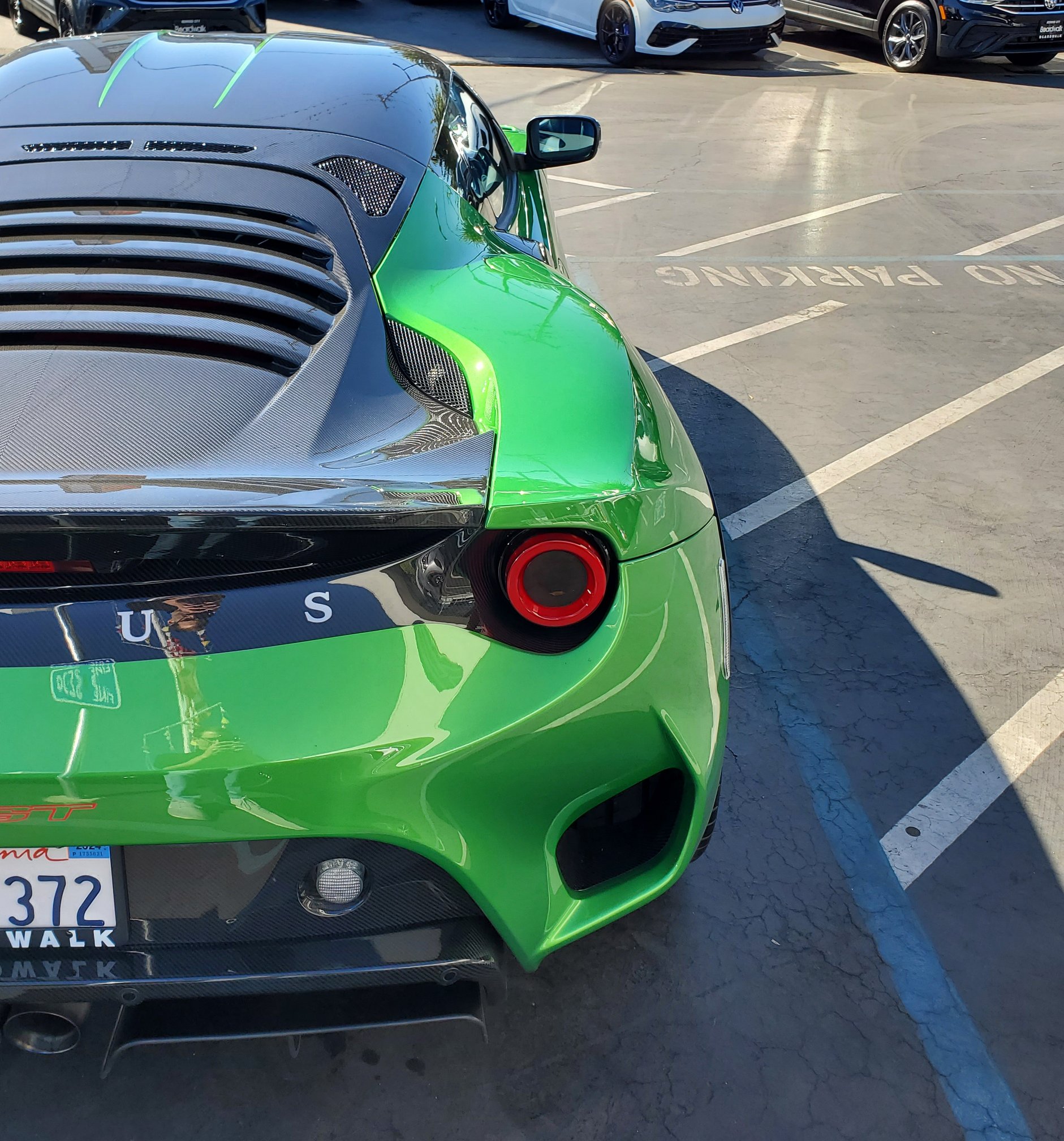 The windshield mirror is useless since the slatted carbon-fiber engine cover blocks the rearview. I’ll rely on the reversing camera if I need to back up.