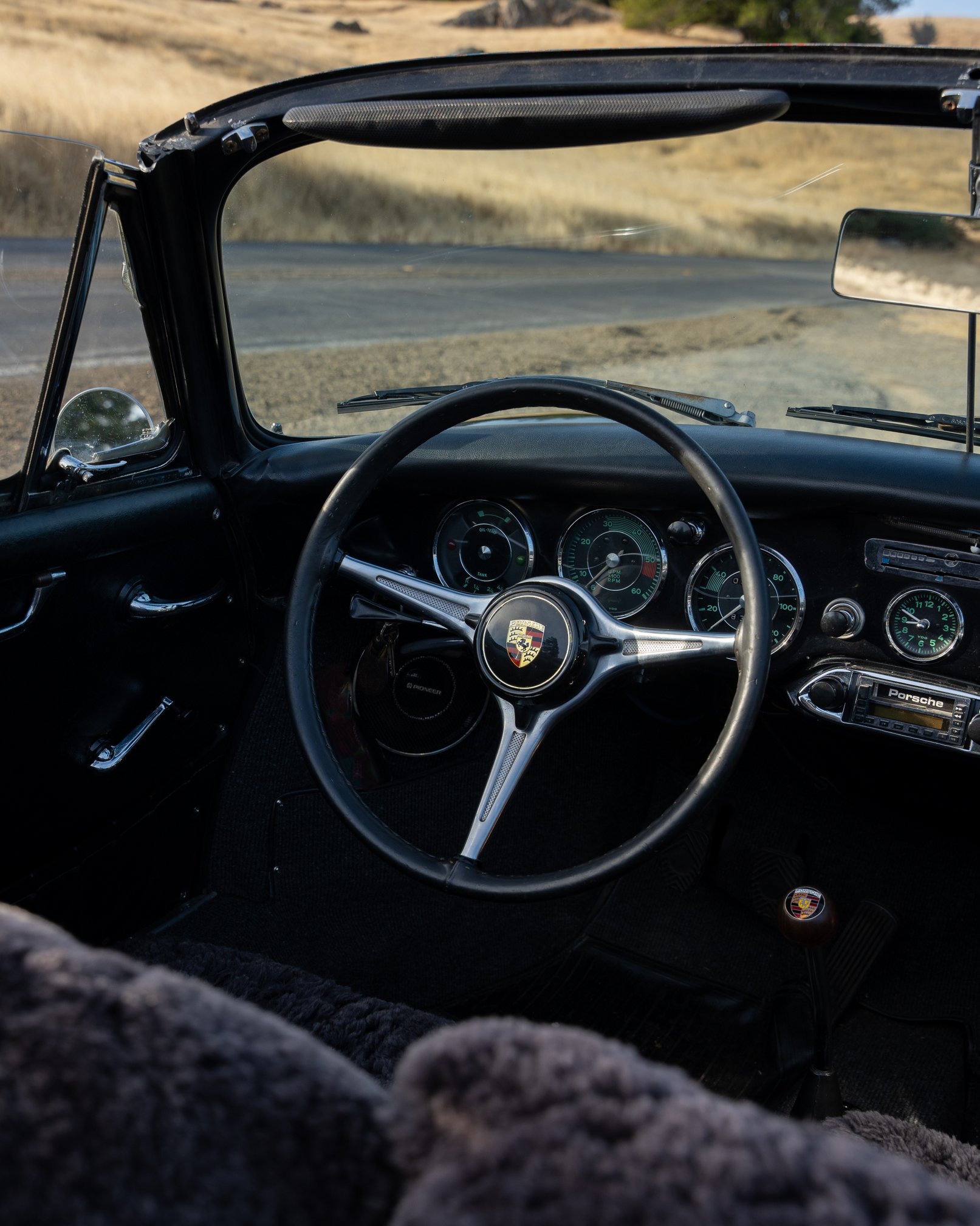 It is the classic hardware that has me on edge. The brake linings may as well be made of wood, the narrow tires offer unknown—but undoubtedly limited—quantities of grip, and the little air-cooled four-cylinder lacks the grunt to sprint me out of danger. Oh, and the seat belts? They were installed aftermarket, as the 1963 356 B Cabriolet S didn’t have them standard. Hopefully, they are attached to something substantial.