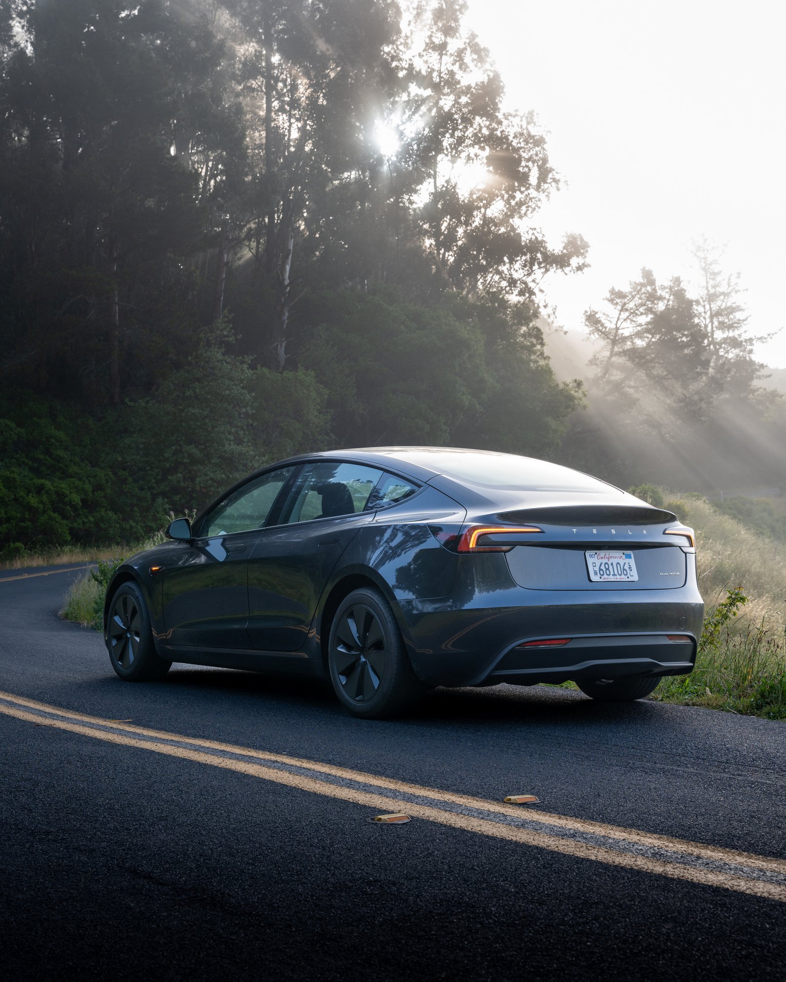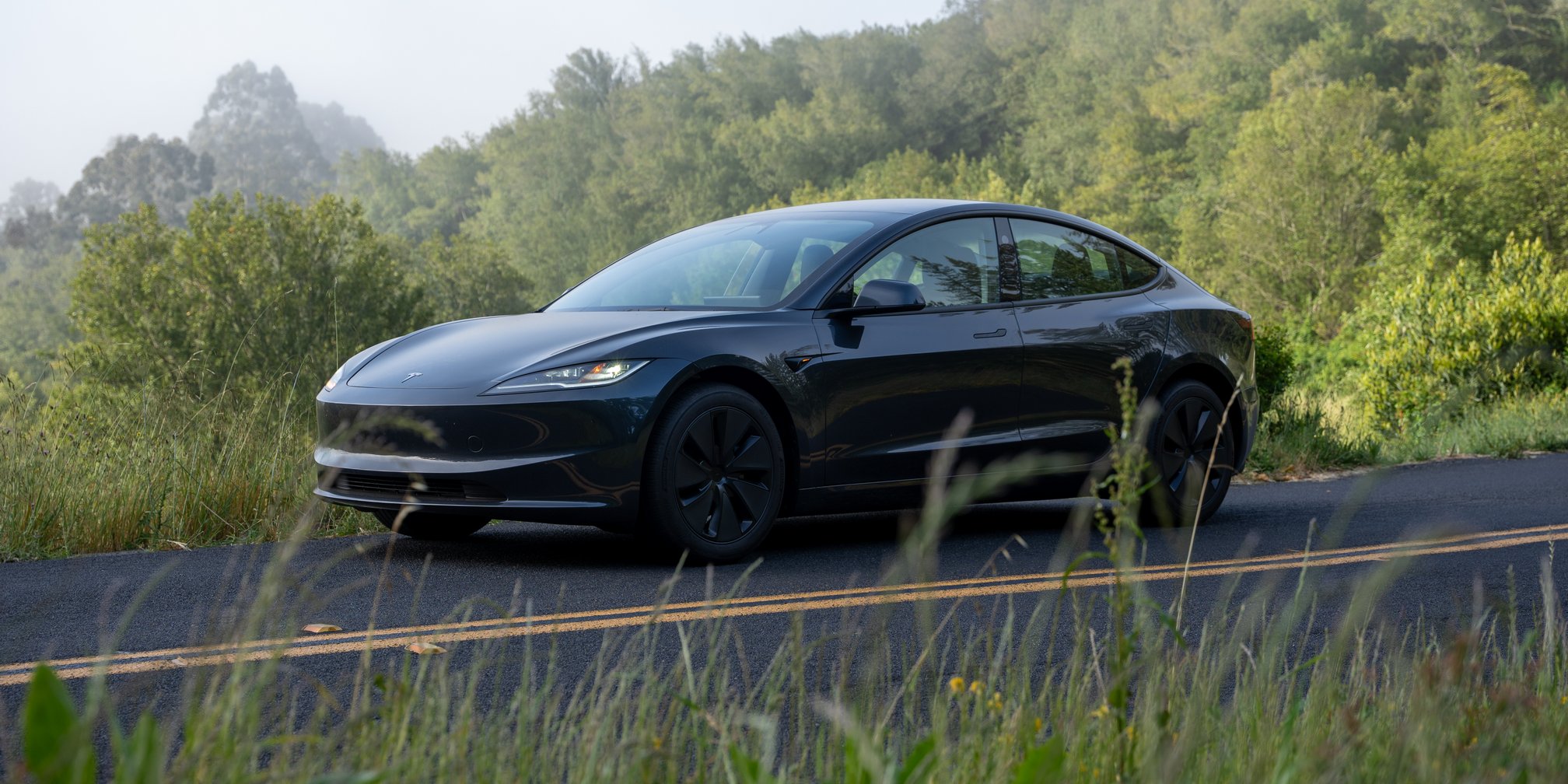 This initial impression holds as I rapidly climb Grizzly Peak. The new car is supremely confident in the corners, with its chassis breathing over the bumps, keeping the tires under control without pummeling the passengers. The 2024 Model 3 is a well-sorted sports sedan with suspension tuning befitting a BMW 540i M Sport.