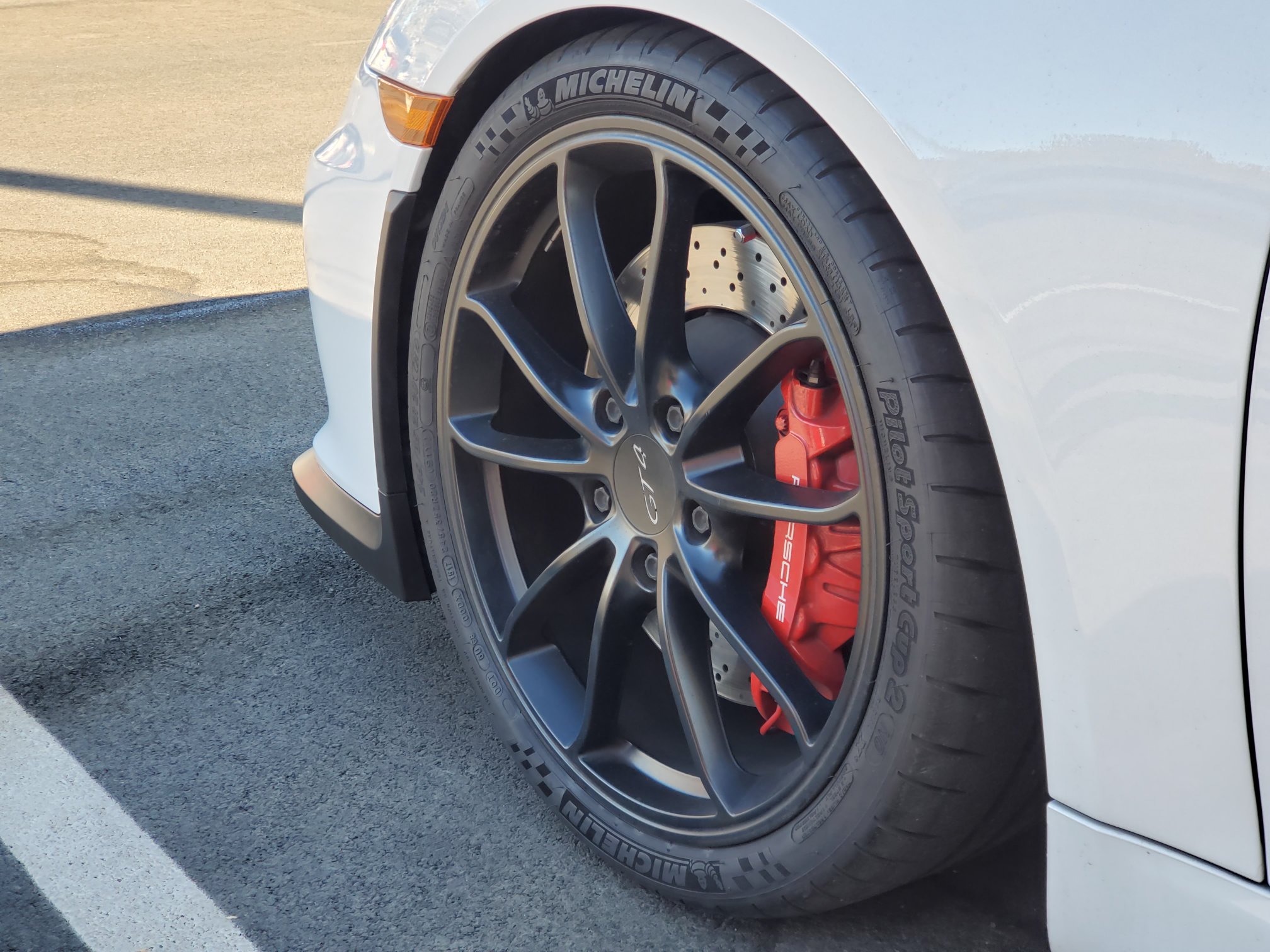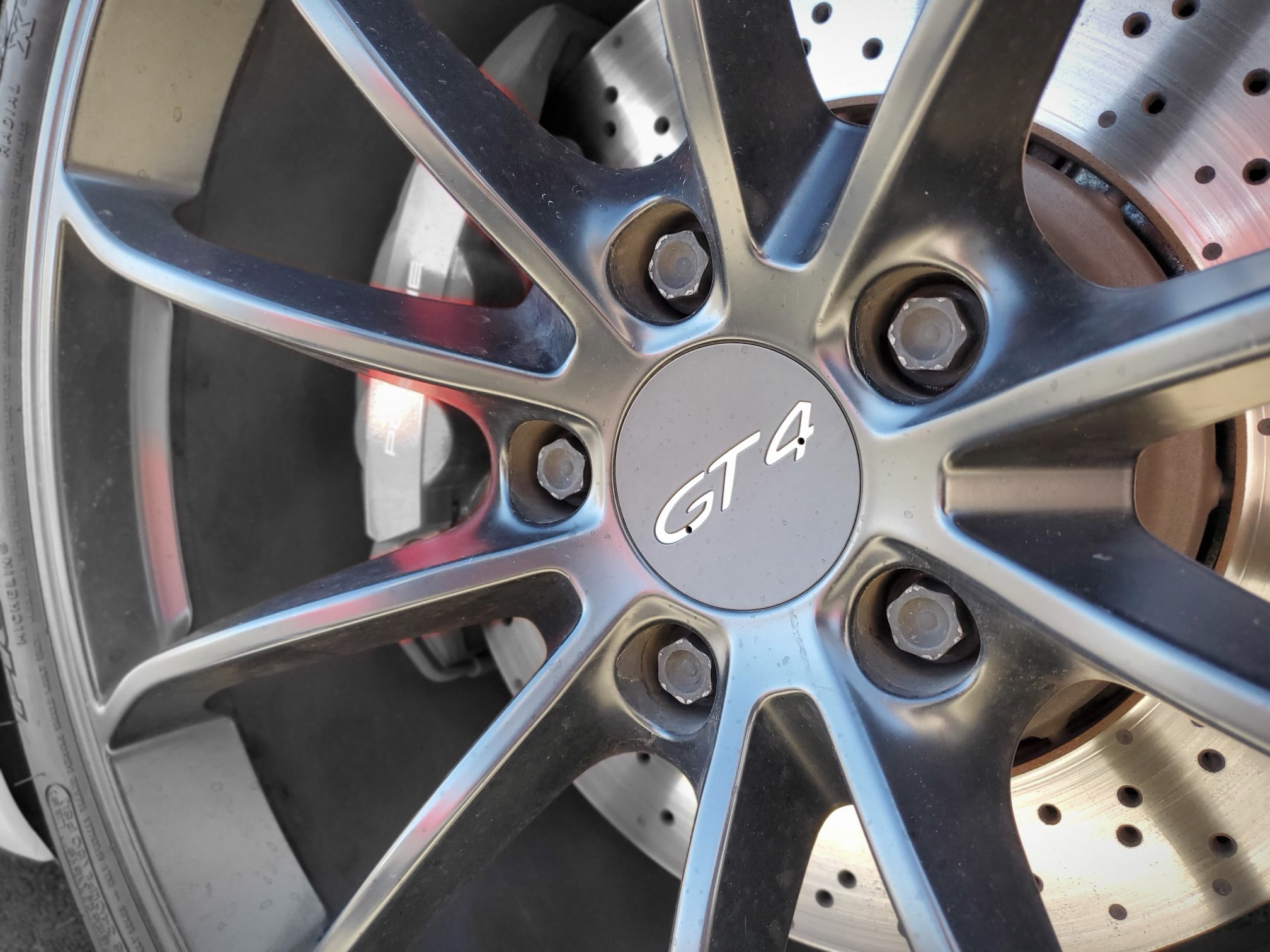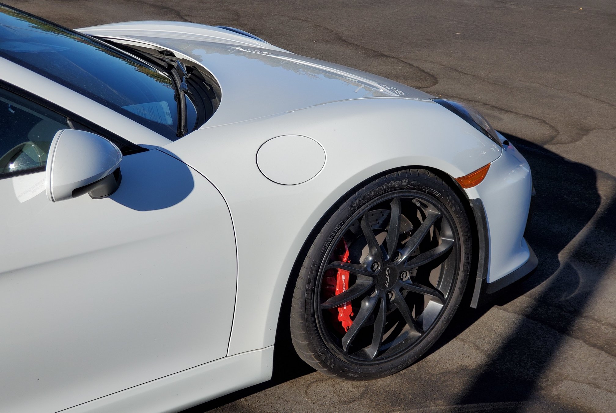 My GT4 tester has 8k miles on the clock. I have no illusions of these miles being easy since this one wears (paint protection film) battle armor that is custom cut for catching race rubber. Though the PPF is starting to cloud, the performance consumables are fresh: The Michelin Pilot Sport Cup 2 tires have full tread and the brake pads and rotors are thick.