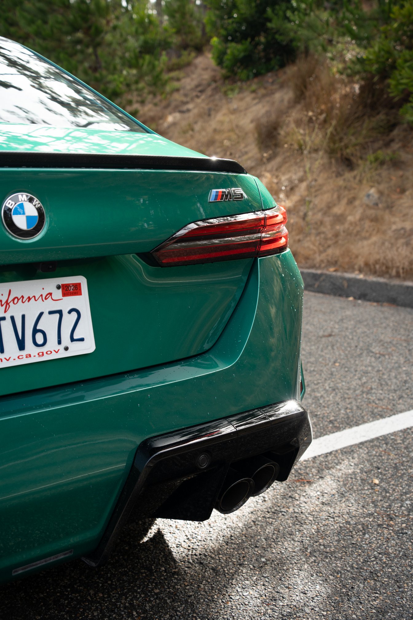 The fun continues as the road bends back through the forest: The M5 accurately turns into the corners, adeptly managing its weight and fighting body roll, but its tail steps sideways when I feed in the gas. The sensations are familiar from my old Focus RS, which would intentionally overdrive the outside rear tire to pivot the car towards the apex.  Either the M5 is playing the same torque-vectoring game, or the 4WD Sport mode is deliciously rear-biased and easily overwhelms the rear traction.  No matter the method, the result is the same: I have to back off the throttle or unwind the steering to keep the M5 on my intended arc.