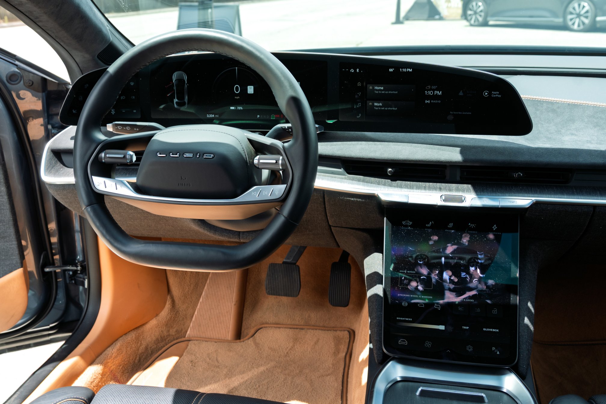 When I get the Air out on the road, I appreciate the car’s ride quality. The Air Grand Touring uses magnetorheological shocks, similar to those found in a Cadillac, and they give the sedan a soft ride. I’m motoring in the Smooth drive mode, and the Air has good control of body motions and even offers a lovely hint of waft over bumps.