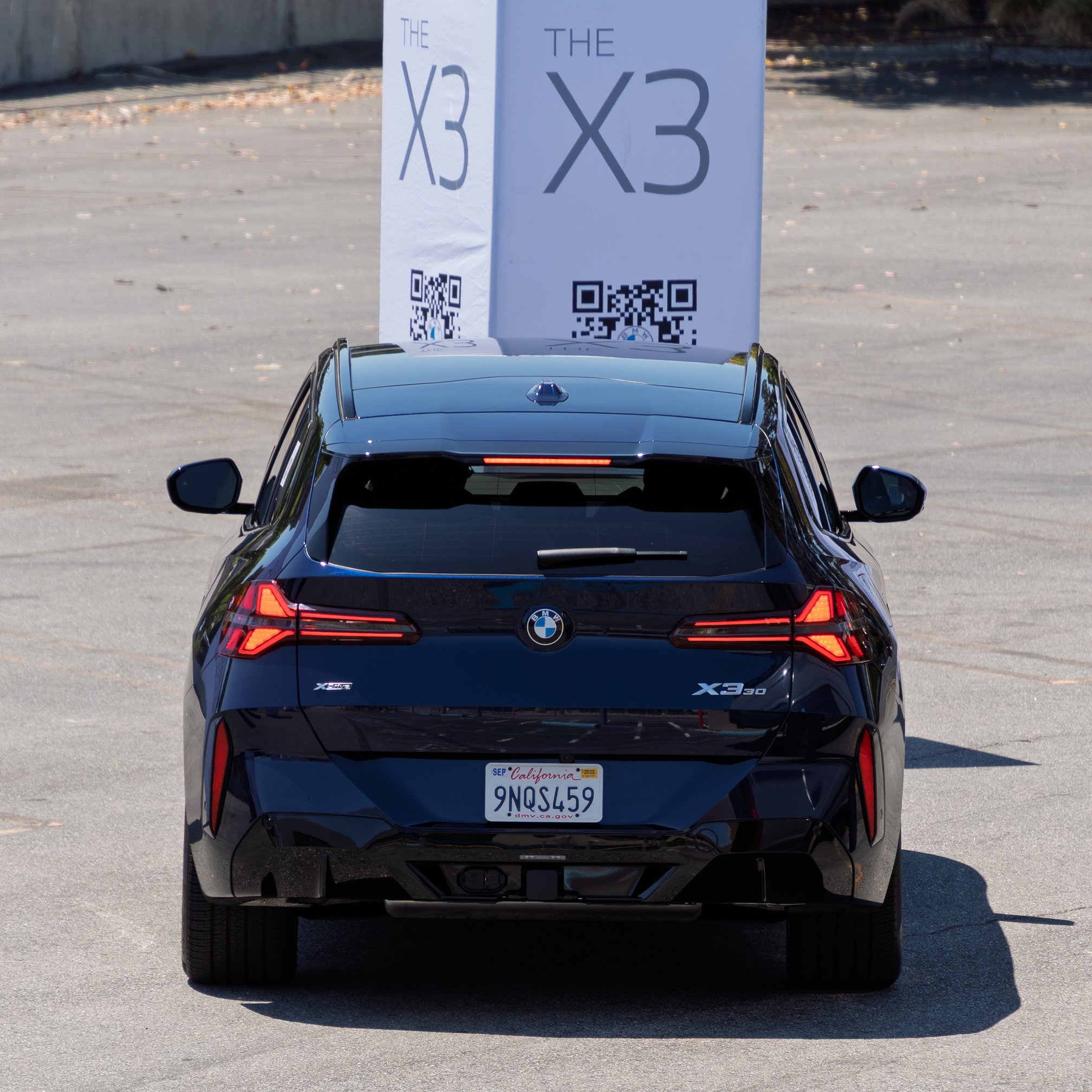 I am at a BMW test drive event in Silicon Valley. I just hopped out of the supremely comfortable 2025 BMW X5 50e, and, although the X5 is the X3’s big brother, it makes a bad point of reference for the X3 M Sport. Why? Well, the midsize X5 is one of BMW’s most luxurious offerings—it has four-wheel air suspension, a leather-clad interior, and a rear bench that comfortably accommodates three adults. The compact X3, on the other hand, is filled with reams of interior plastic and vinyl, has a non-adjustable sports suspension that bests granite for hardness, and it has a rear bench that leaves three adults cramped. Basically, the X3 M Sport is as hardcore as the X5 is comfortable.