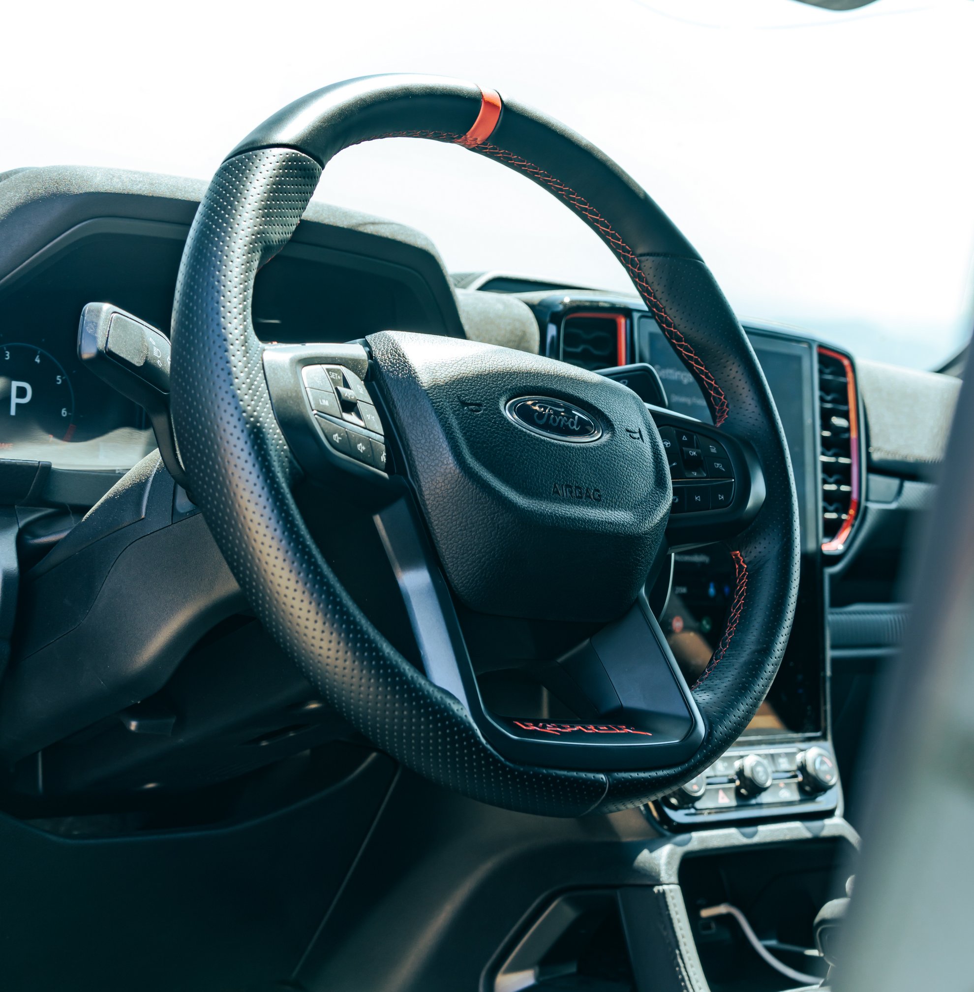 The Ranger Raptor is wider than the cars I’m used to driving, but not ridiculously broad-shouldered. (For that, see the Ford F-150 Raptor.) As I am on a generous piece of tarmac, I quickly acclimatize to threading the midsized truck down the reasonably-sized lane.