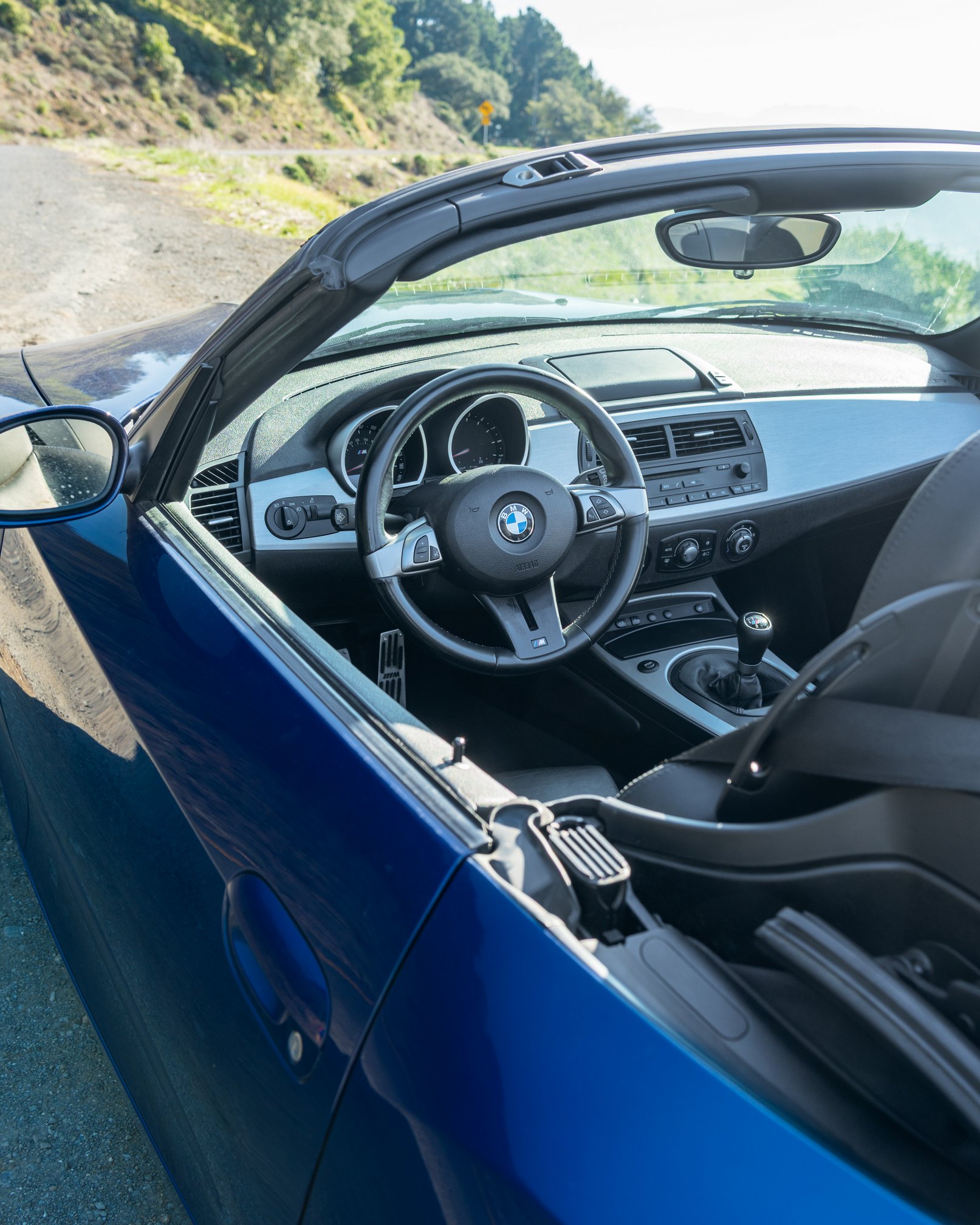 The Z4 M Roadster tips the scales at 3300 lbs, giving it a power-to-weight ratio of 10 lbs/hp. That number can’t hold a candle to today’s M cars: the 2025 M4 Competition, for example, punches out 6.7 lbs/hp! Back in 2006, Car and Driver squeezed a 4.6s 0-60 mph run and 13.2s quarter-mile time out of the Z4 M Roadster. The same magazine clocked a stick-shift 2021 M4 at 3.8s and 12.0s. These days, the Z4 M Roadster isn’t top-tier fast, but it still puts numbers on the speedometer that could get me into big trouble!