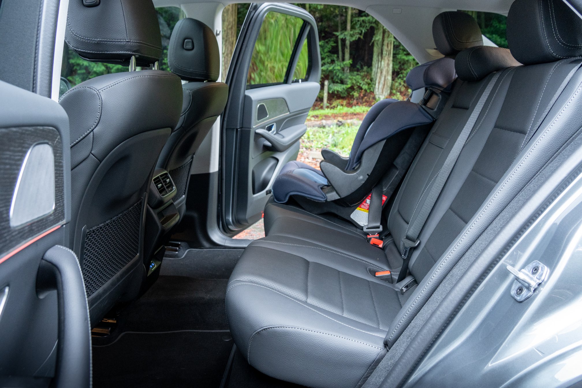 My kids can load themselves into the SUV, and when they do, they discover business-class levels of legroom; even if my girls grow to WNBA heights, they’d be comfortable on the GLE 350’s back bench. That improbable pro-baller day is a way off, as my five-year-old still uses a child seat. Installing her seat is a cinch thanks to the prominent LATCH anchors in the seat bite.