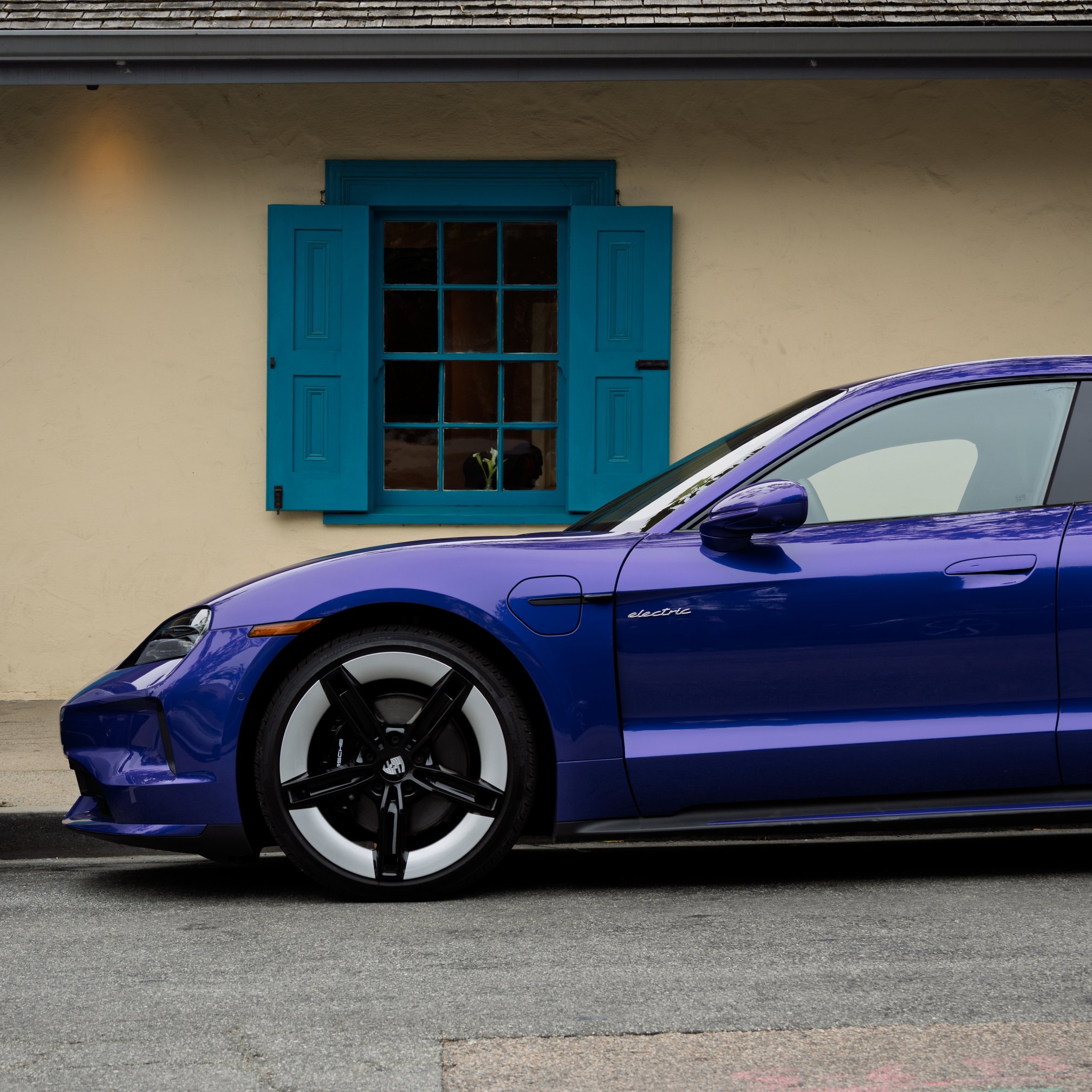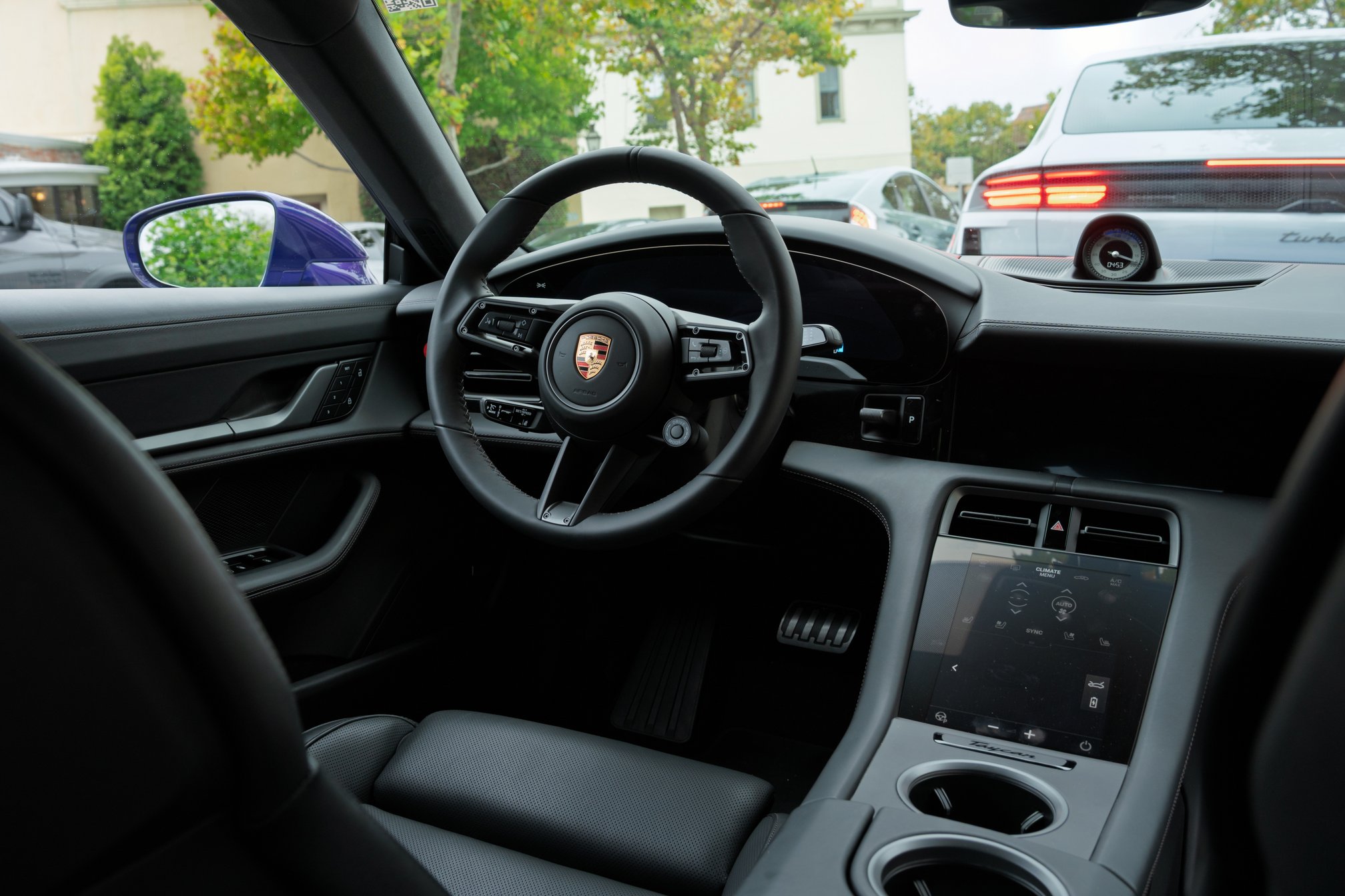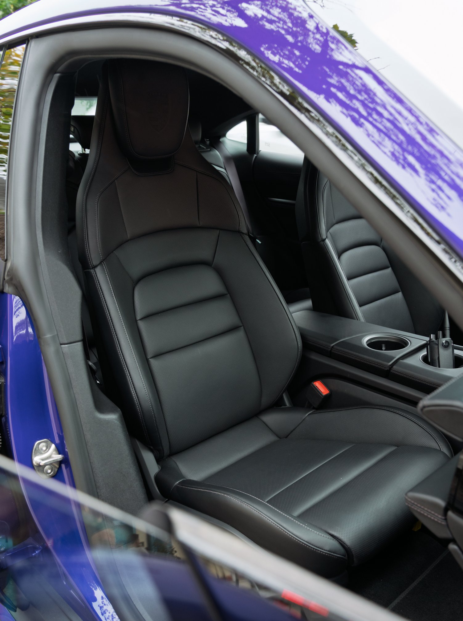 The walk up to the car starts my good impressions. The Taycan 4S—which was updated for 2025—is long, wide and sleek, as close to a coupe as a five-door hatchback has ever been. And in its bold purple paint, the car is unignorable—I can’t miss it.