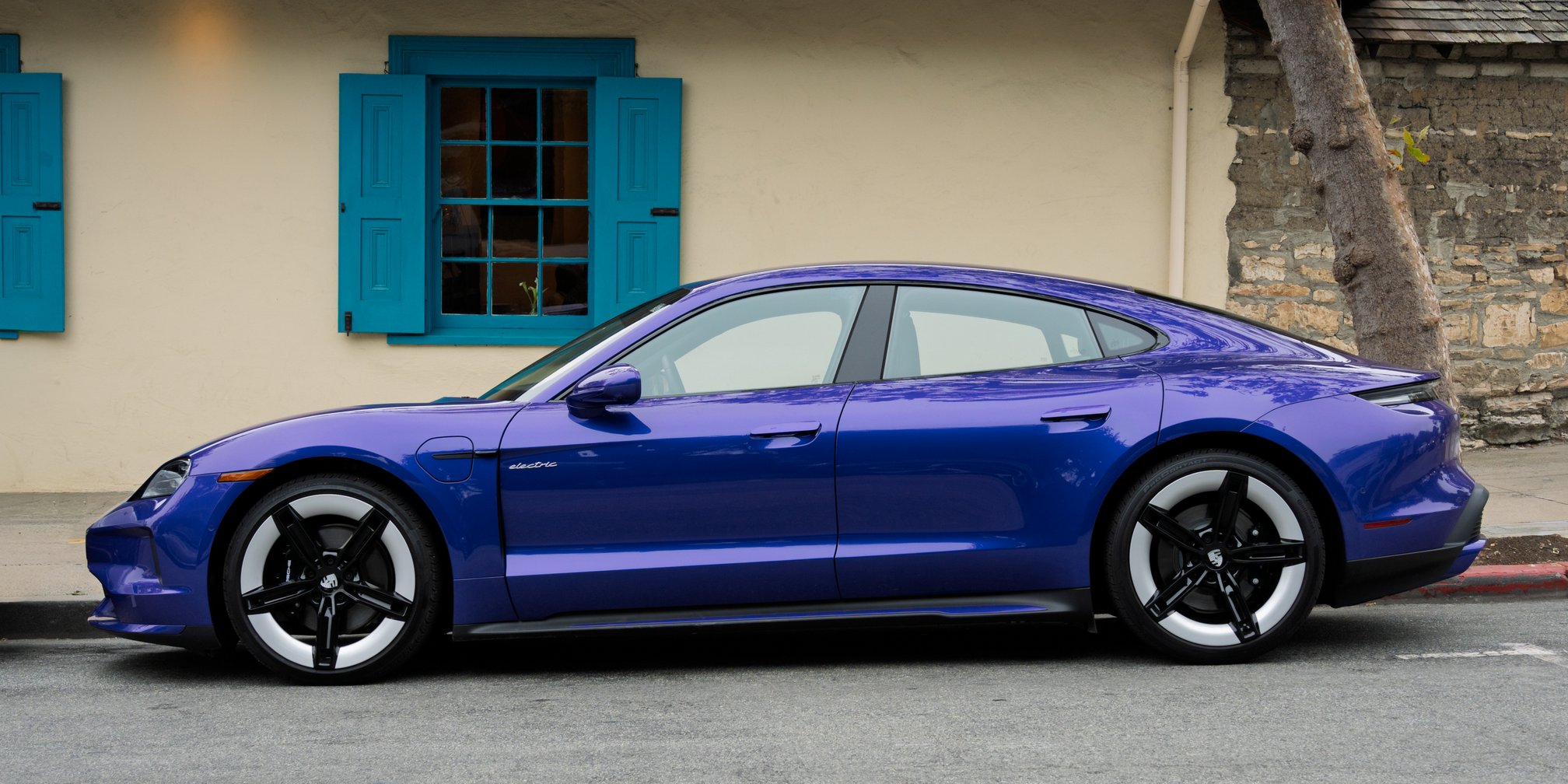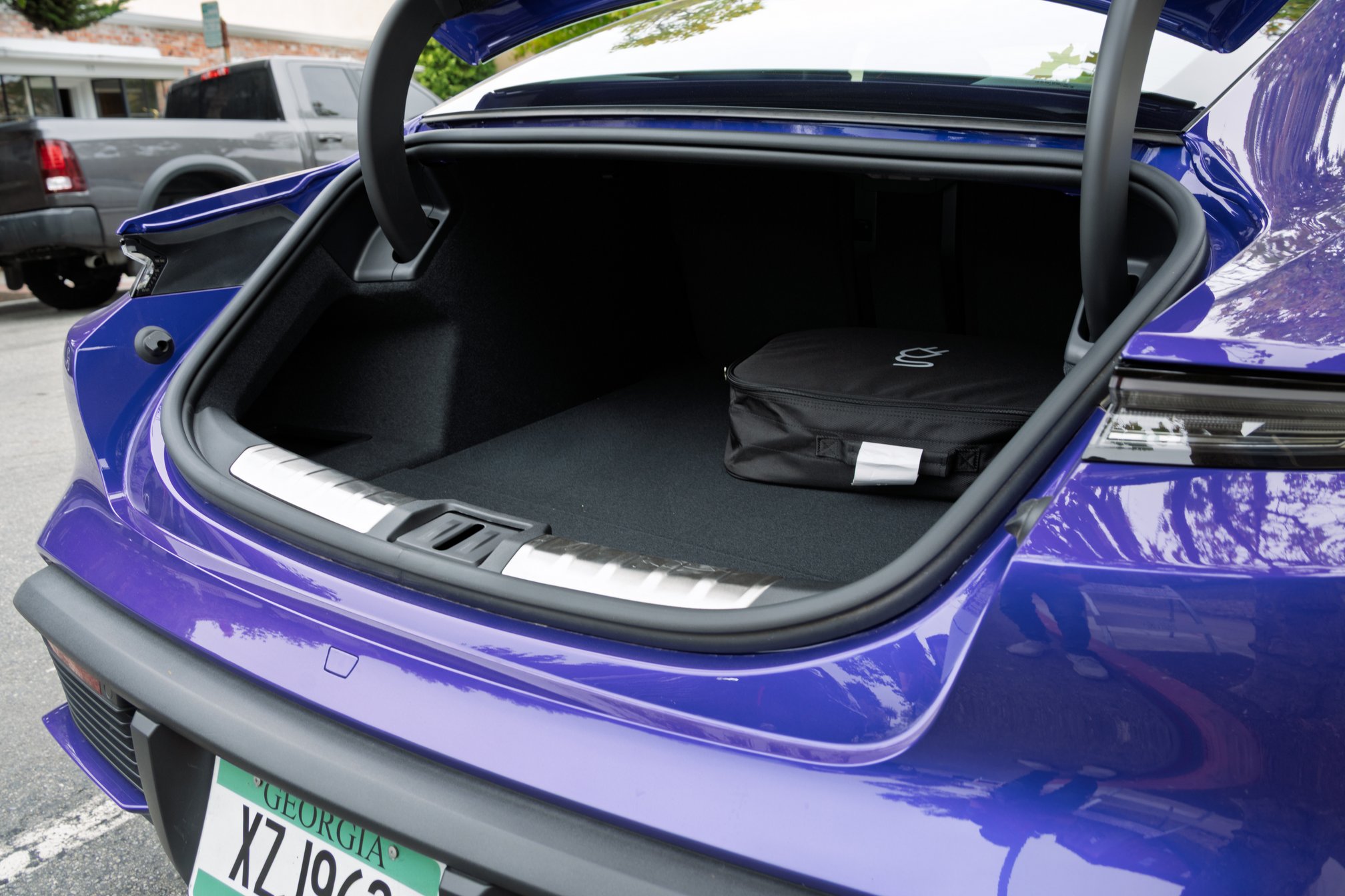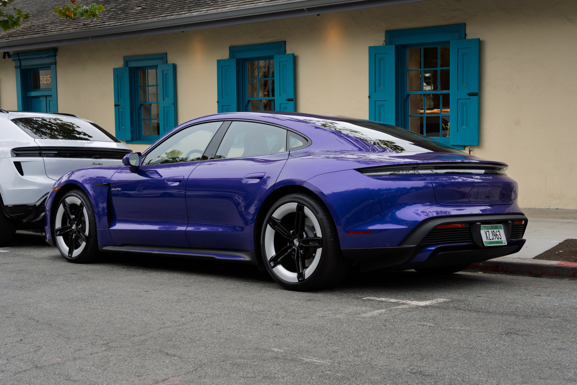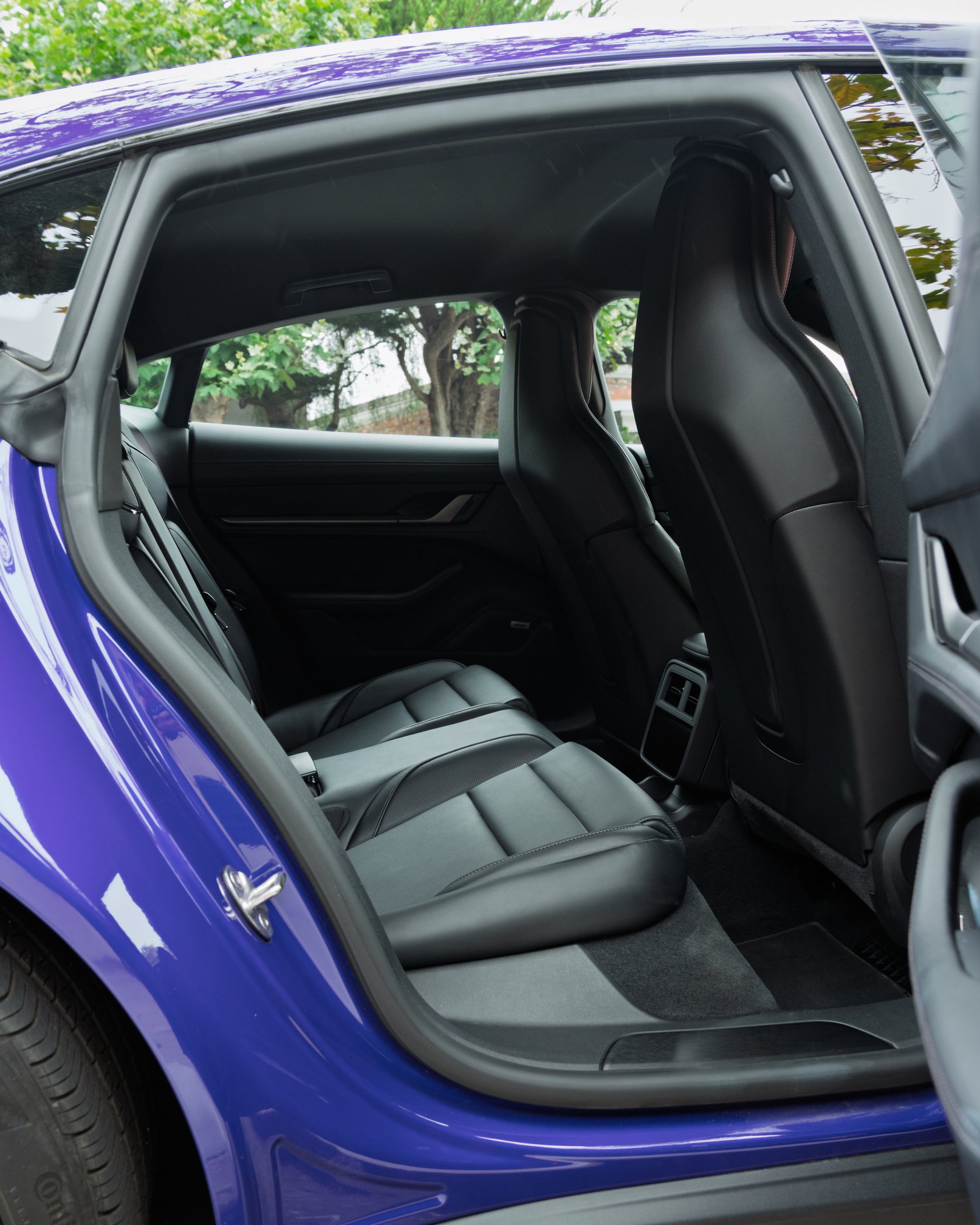The walk up to the car starts my good impressions. The Taycan 4S—which was updated for 2025—is long, wide and sleek, as close to a coupe as a five-door hatchback has ever been. And in its bold purple paint, the car is unignorable—I can’t miss it.