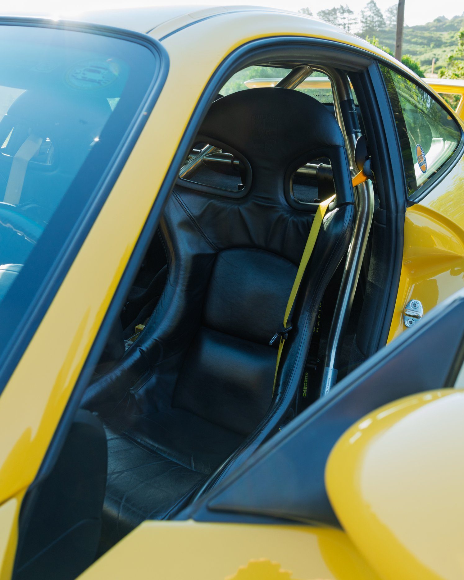 This 996 GT3 saw track time in its younger years, and it is appropriately fitted with the factory bucket seats and half roll cage. Prior owners fortified the car for race duty by installing aftermarket harnesses, camber plates, drop links, a front strutbar, steel brake lines, upgraded radiators, and a Guard LSD. There were track pads in the calipers, too, but after squealing like a garbage truck one too many times, they were pulled for street pads.